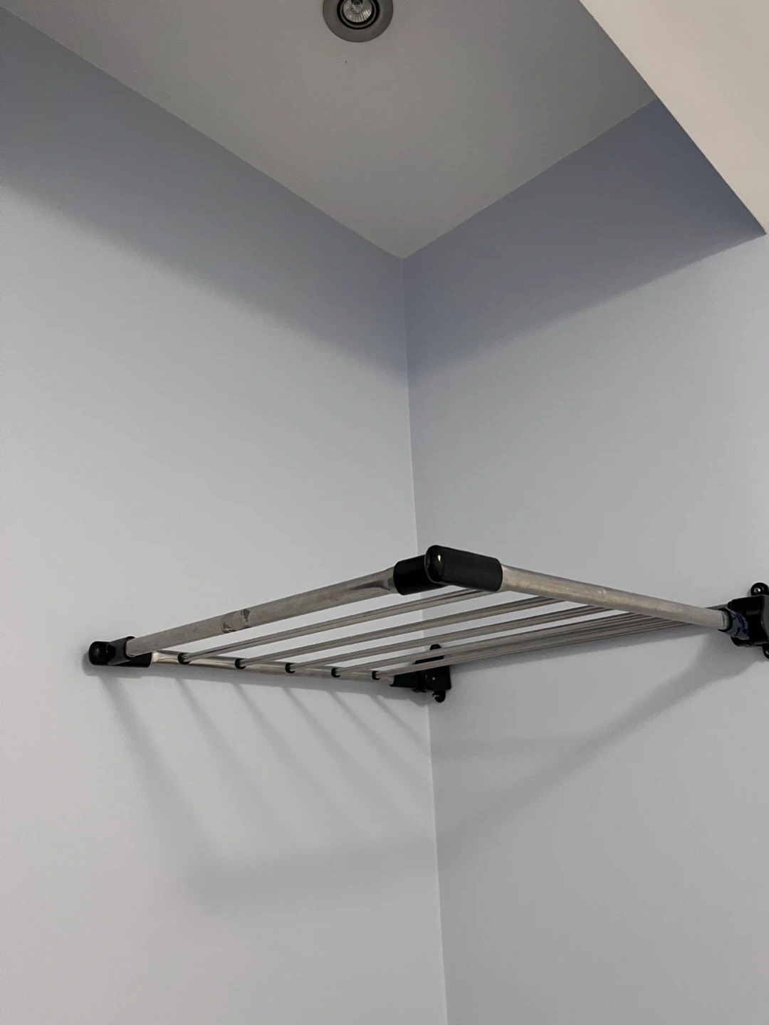 Selling a wall-mounted clothes drying rack. perfect for small spaces or laundry rooms.