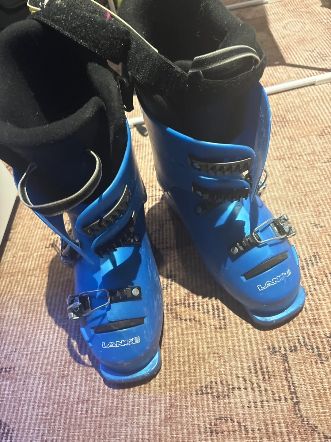 Selling a pair of Lange RX 80 ski boots in a vibrant blue colour. They are size 24.5. Great for hitting the slopes this winter!