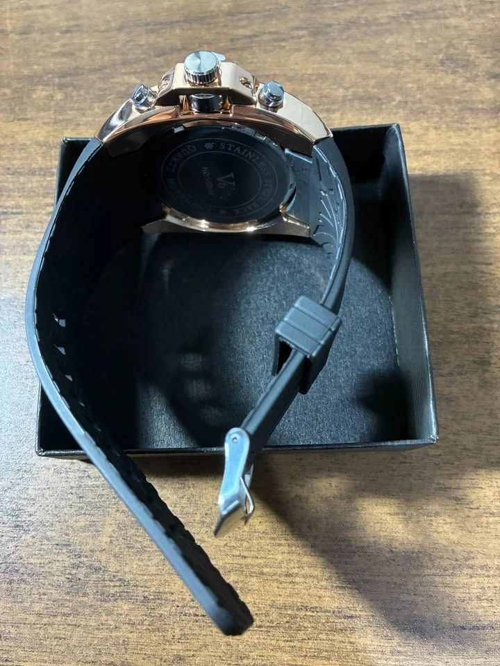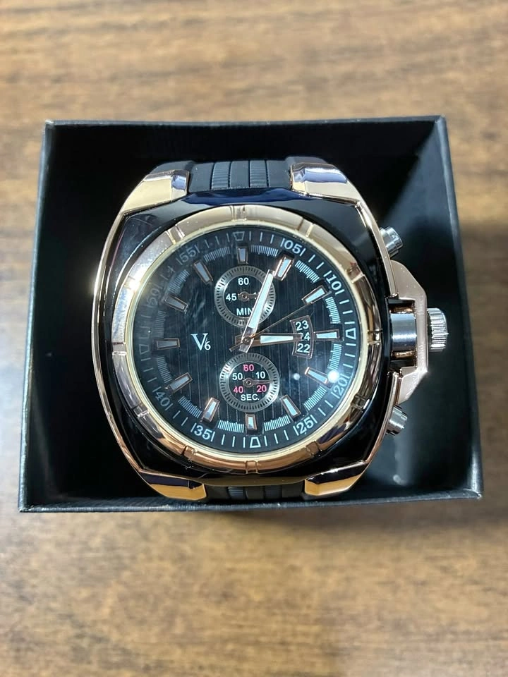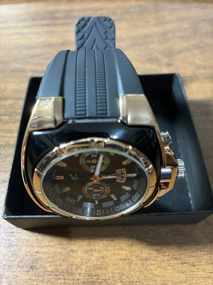 V6 Quartz Sport Watch with Black Silicone band, stainless steel, man's, NO V0048, New