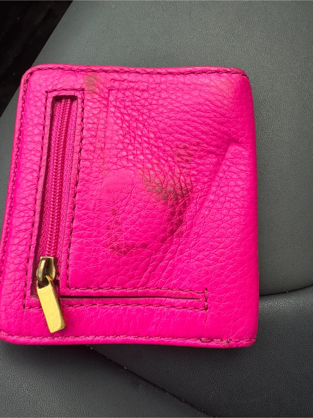 Selling a bright pink Fossil leather wallet. It has a few signs of wear (dye transfer) as shown in the photos. Perfect for everyday use!