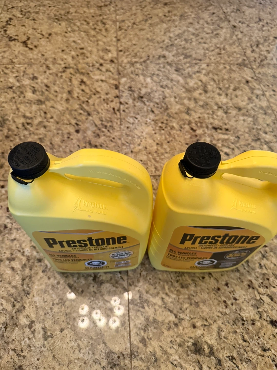Selling two jugs of Prestone Antifreeze Coolant. Each jug contains 3.78L of coolant and is suitable for all vehicles. It offers up to 10 years or 500,000 km of protection. Ready to use! The jugs are sealed and not unopened. $15 each