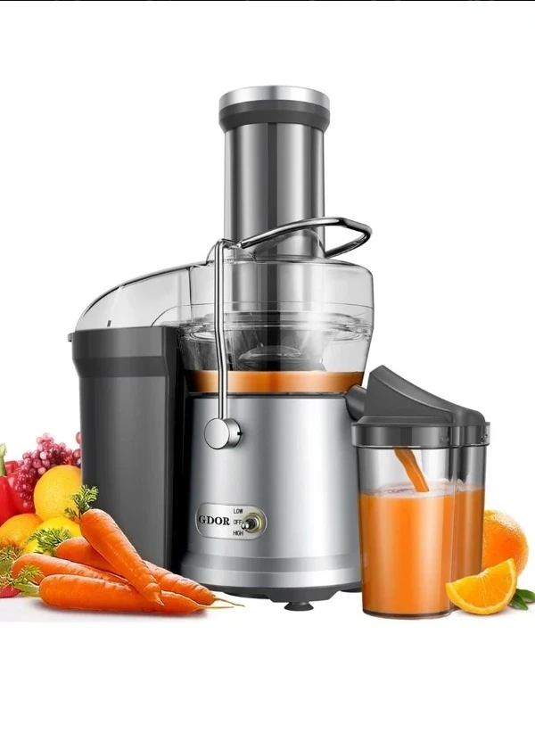 GDOR Juicer 1200W Juicer Machine with Larger 3.2" Feed Chute, Titanium Enhanced Cutting System, Centrifugal Juice Extractor Maker with Heavy Duty Full Copper Motor, Dual Speeds, BPA-Free, Silver 2.0