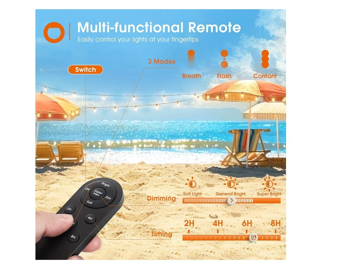 Selling a brand new set of Addlon solar string lights! This set is 48ft long and includes 16 sockets. The box includes a remote control and a solar panel. These lights are waterproof and use solar energy, making them ultra long standby!