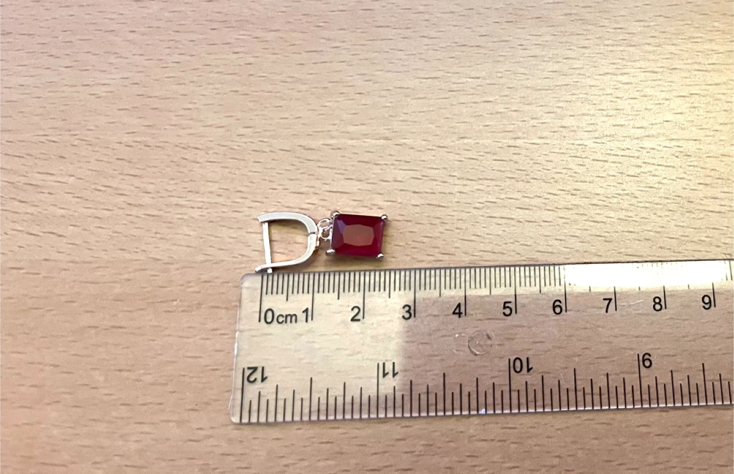 These are a pair of lovely drop earrings featuring a red gemstone in a square setting. They have a classic and elegant design!