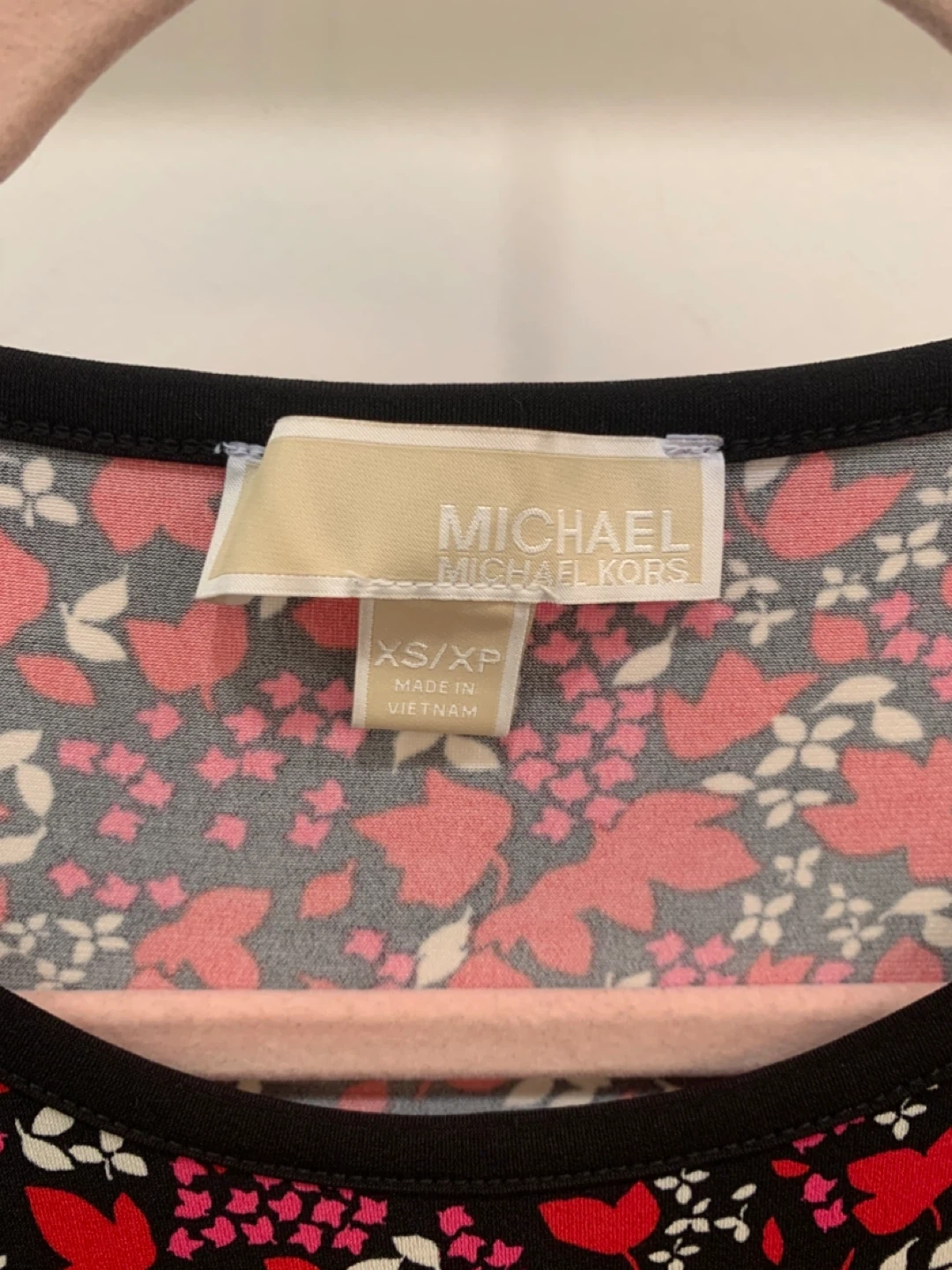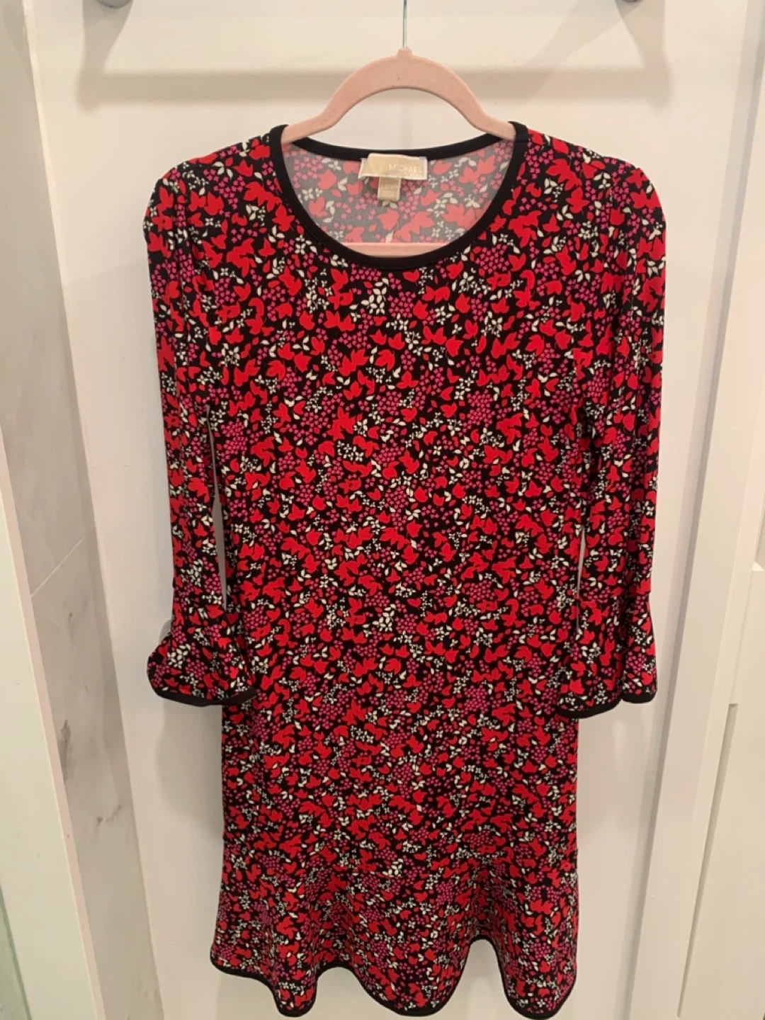 ❤️ Selling a Michael Kors dress in size XS. It features a vibrant floral print with red, pink, and white flowers on a black background.