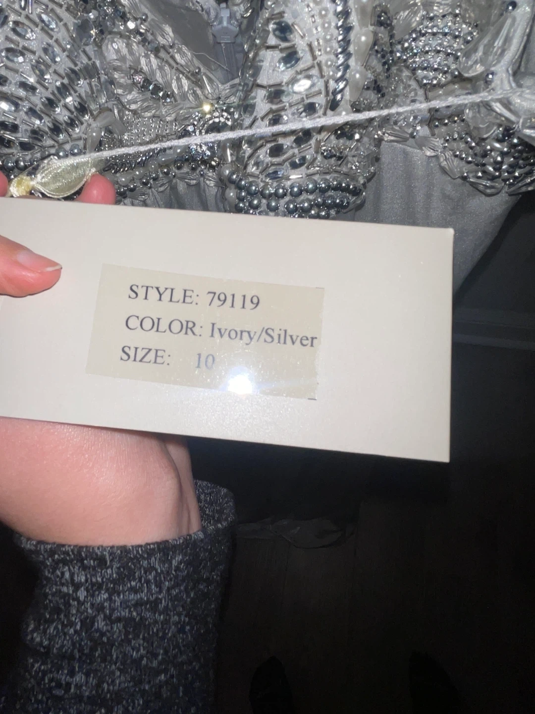 Mignon Ivory/Silver Embellished Beaded Jewel Gown size 10