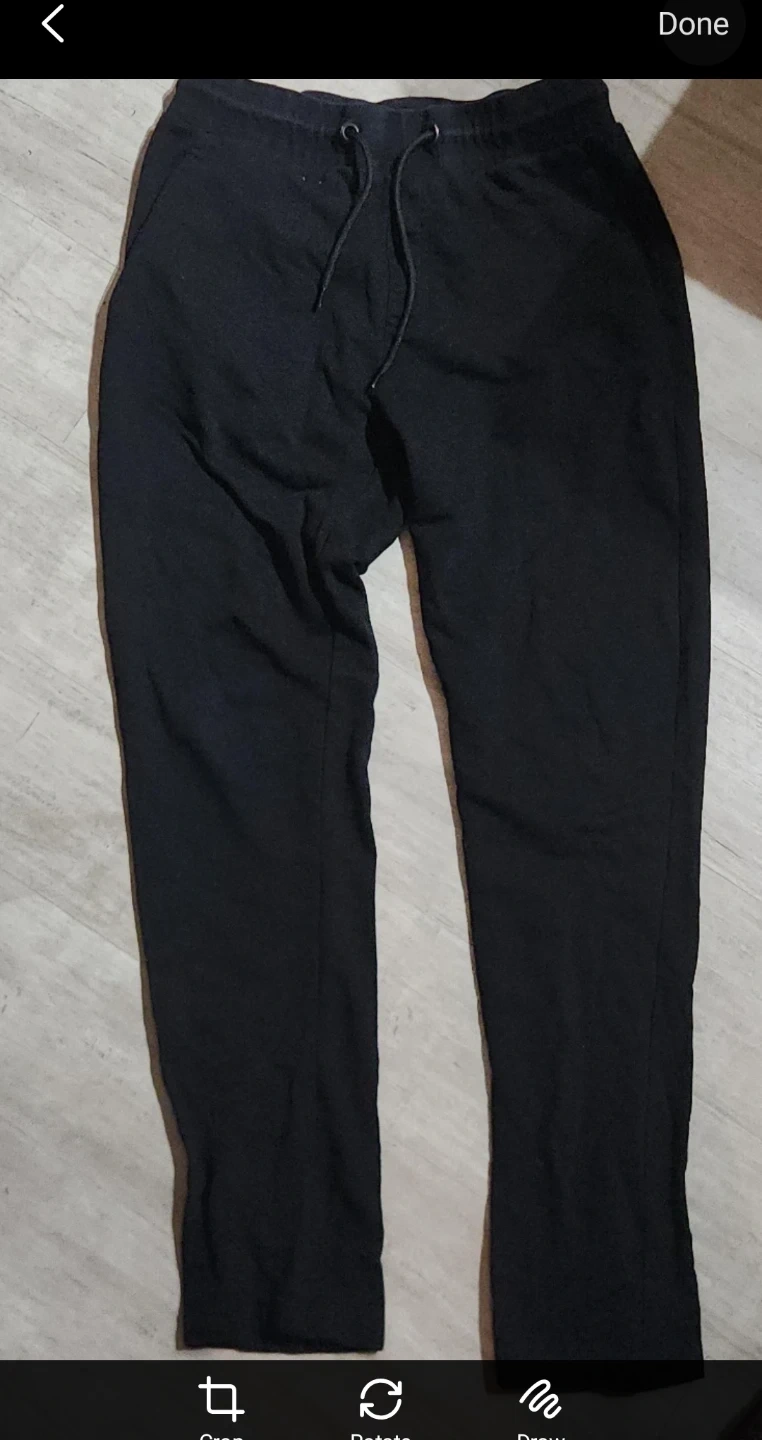 Selling a pair of black sweatpants. They're in great condition and perfect for lounging around the house or running errands, the size of the pants are a large, the pants have side pockets along with a back pocket. Extremely comfortable and warm!!! Perfect for winter:)
