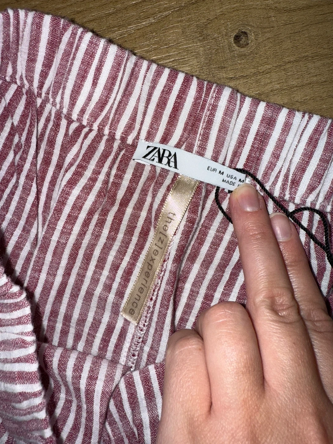 Zara shorts with a striped pattern! They're a size M and perfect for warmer weather. The shorts have a drawstring waist, so you can adjust the fit to your liking