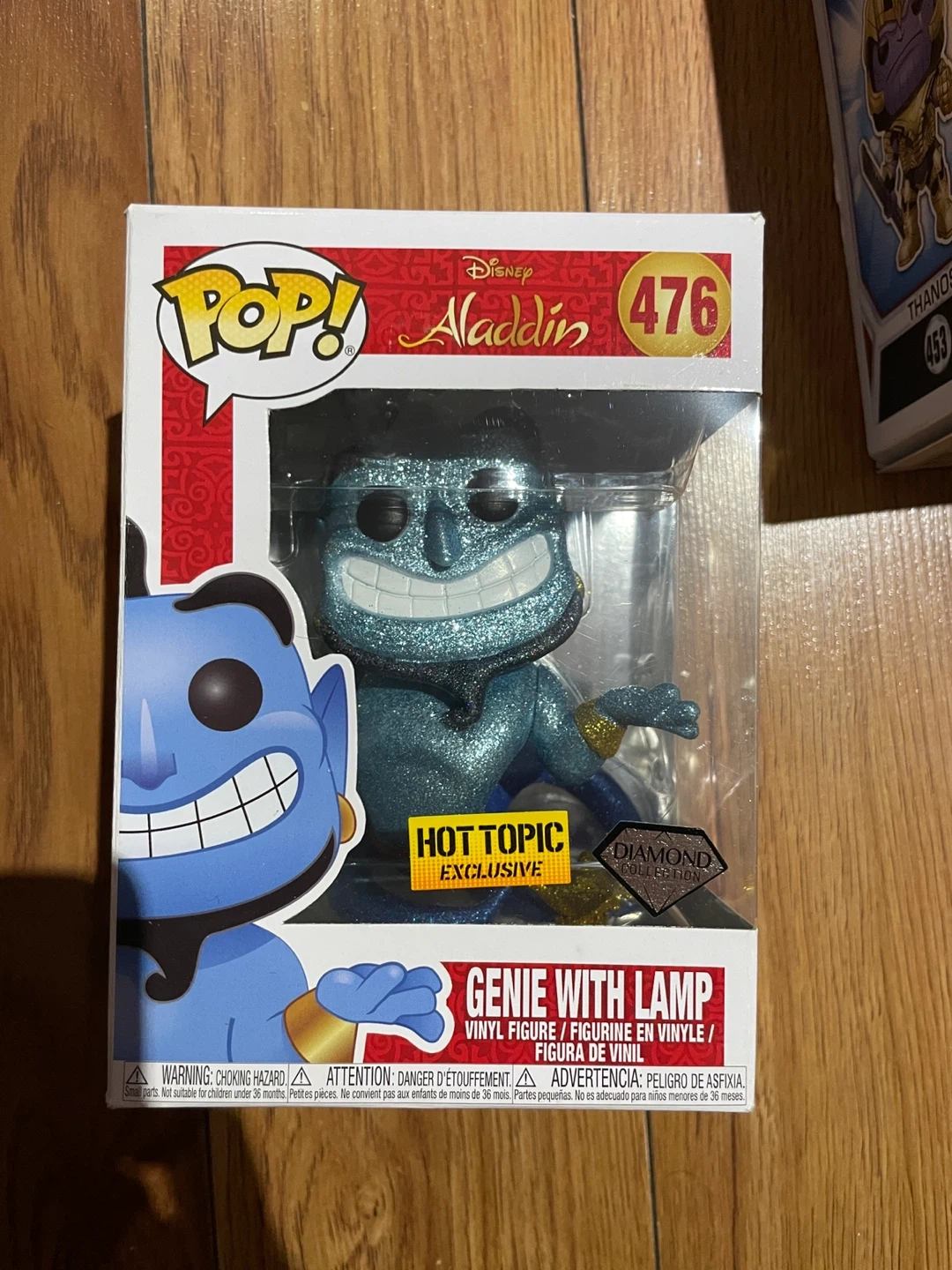 Selling a Funko Pop! figure of the Genie with Lamp from Disney's Aladdin. This is number 476 in the series and is a Hot Topic exclusive from the Diamond Collection. It's a vinyl figure in its original box, ready for a new home!