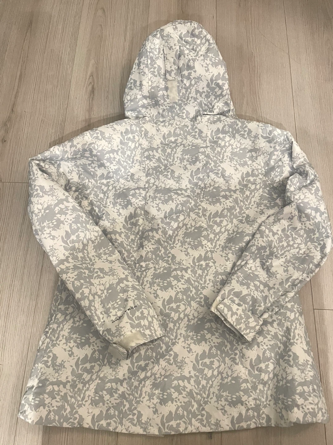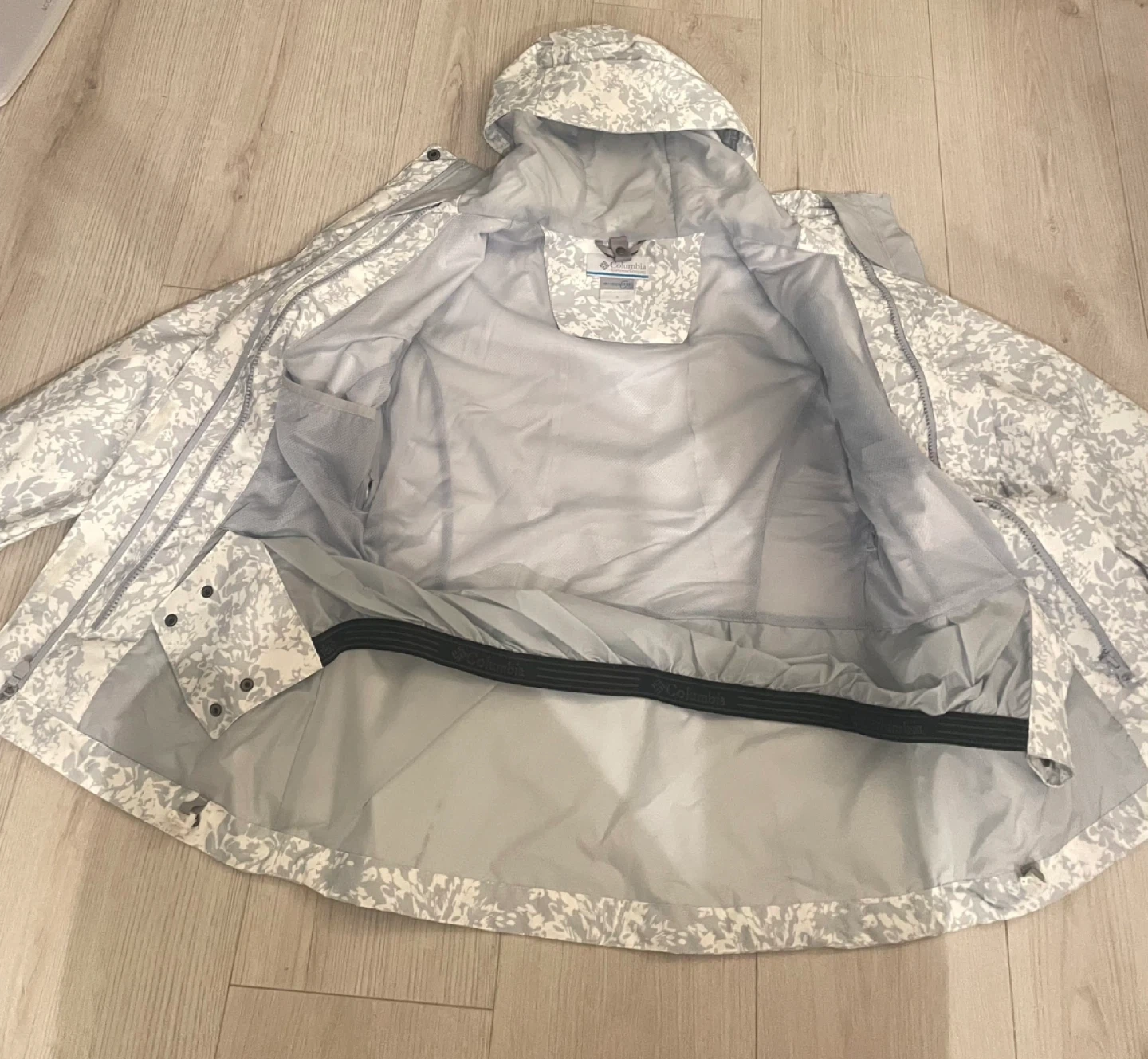 Selling a Columbia Interchange jacket in size small. It's in great condition and ready for the Canadian weather! The jacket features a stylish white and grey pattern.