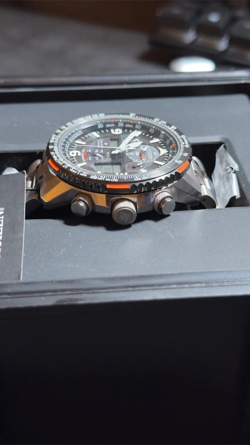 Selling a Citizen Eco-Drive Skyhawk A-T watch! This stylish timepiece features Eco-Drive technology, meaning it's powered by light and never needs a battery. It comes with its original box and instructions. A great watch for everyday wear!