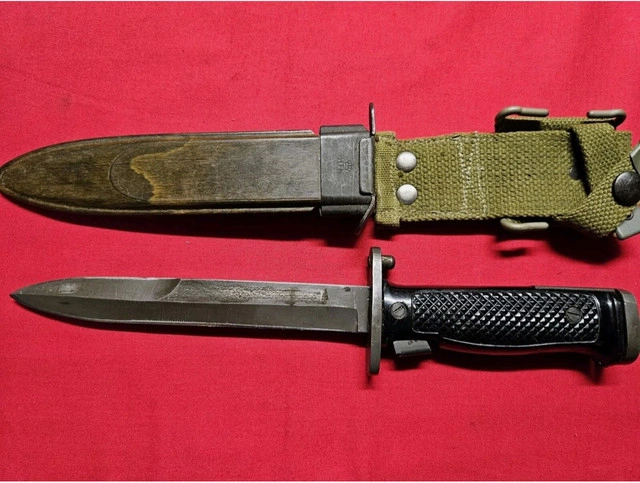 Original Imperial US M5 Bayonet with HTK Danish Woodgrain look Sheath for the US M1 Garand. This is in excellent vintage Pre-owned condition with beautiful blade. Please let photos help determine overall condition. A truly beautiful piece of WW2 Militaria.