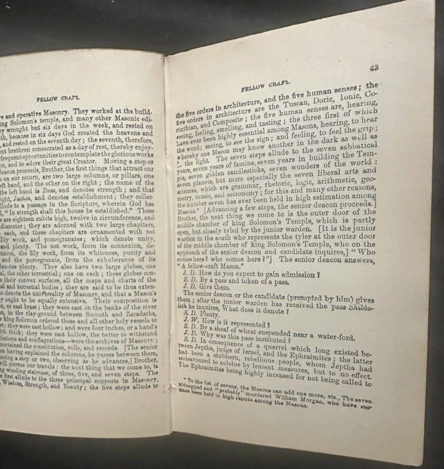 Delve into the enigmatic world of the Freemasons with this extremely rare copy of "The Ritual of Freemasonry," complete with illustrations. A treasure for collectors and historians alike, this book offers a glimpse into the secretive traditions of the Knights Templar and the broader realm of Masonic lore. Rich in historical memorabilia, the volume is a testament to the enduring allure of fraternal organizations. Whether you're a dedicated scholar or a curious novice, the insights and imagery within these pages promise to enhance your understanding of one of the world's most intriguing esoteric orders.