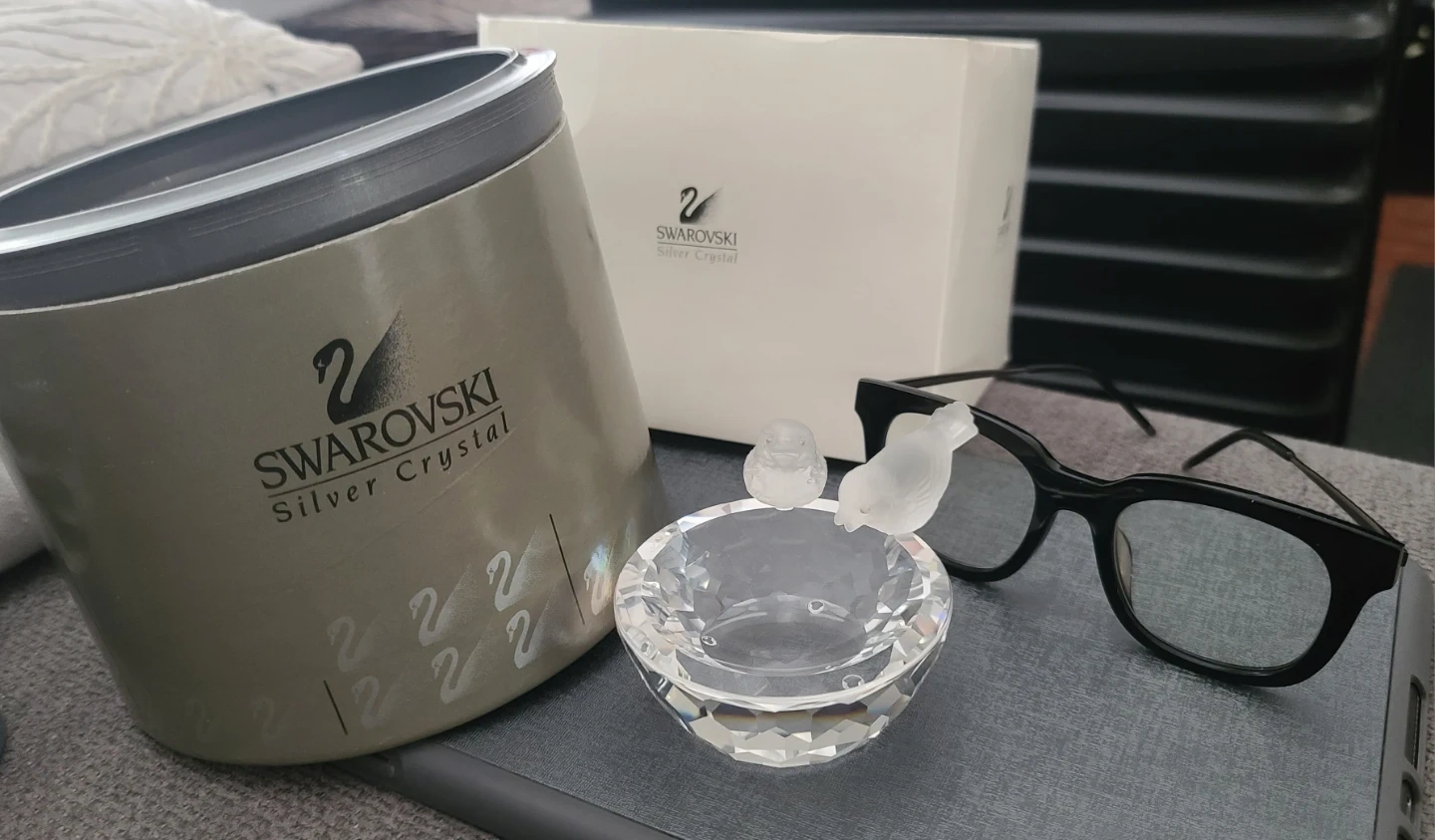 15Selling a lovely Swarovski crystal figurine featuring two birds. It comes in its original box, perfect for gifting or adding to your collection! The crystal is in new condition and sparkles beautifully