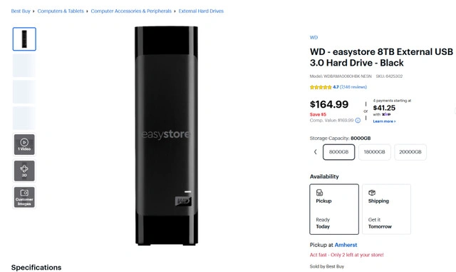 Why buy from me? The drive is functional, has been recently wiped and good SMART health data. Selling because I purchased a NAS setup and no longer need standalone storage.