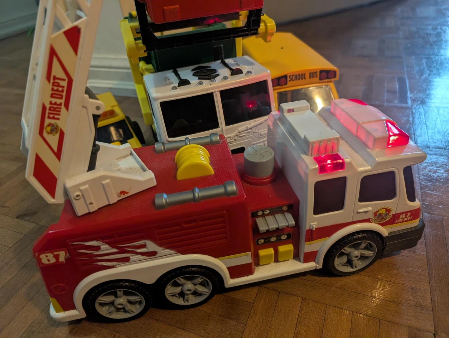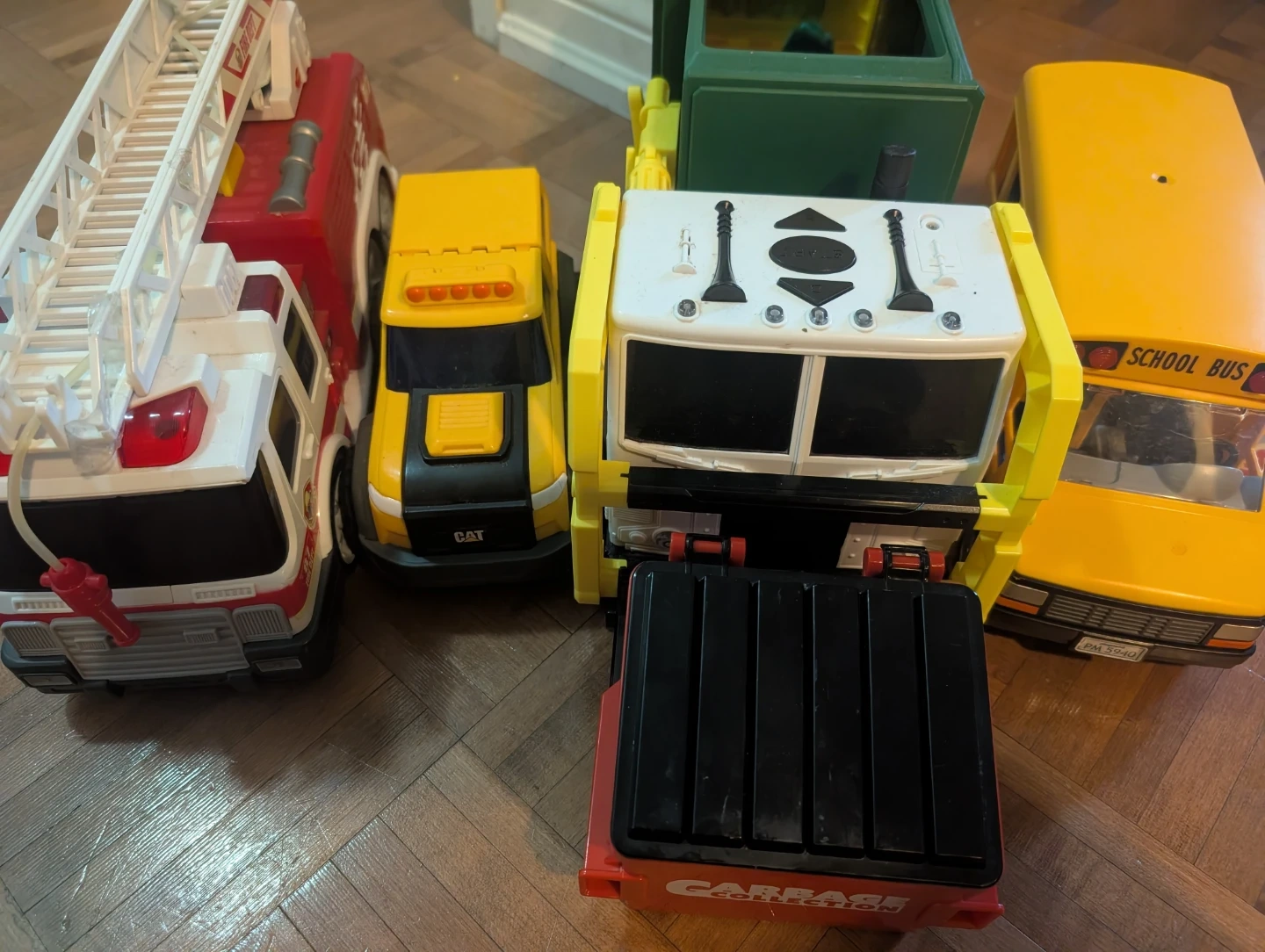 145Selling a set of toy trucks! Includes a firetruck, school bus, construction vehicle and garbage truck. Perfect for kids who love vehicles and imaginative play. Each retails over $25 + tax Selling all for $40 OBO.