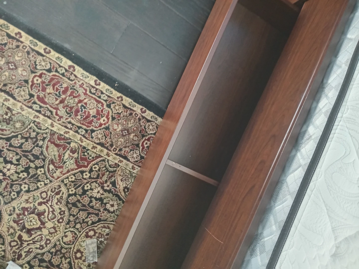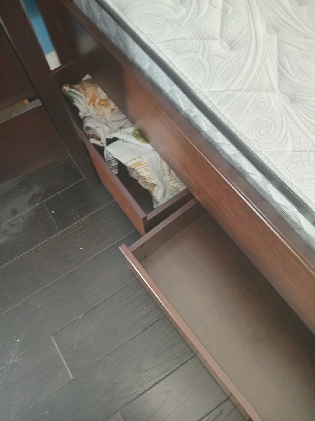 15Selling a queen size bed frame in good condition! It features built-in storage drawers, perfect for maximizing space in your bedroom. The frame has a classic design and a warm wood finish that would complement any decor. It's a sturdy and reliable piece of furniture that will provide years of comfortable sleep. Includes mattress
