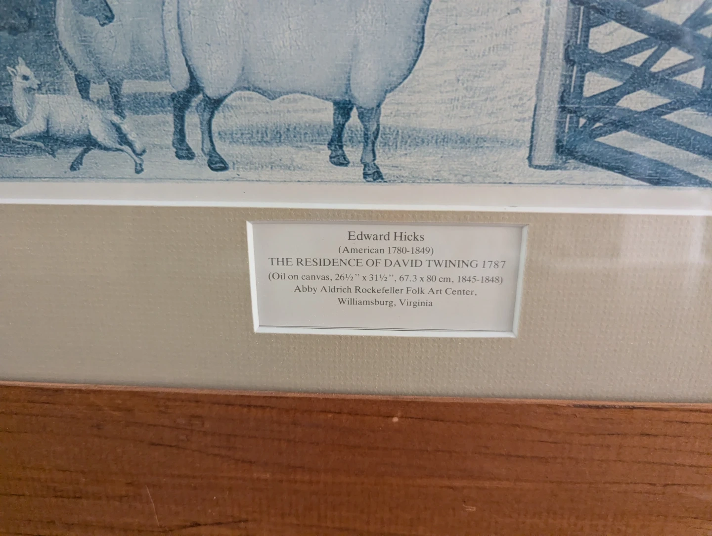 Professionally framed print of The Residence of David Twining 1787 by Edward Hicks. 33" wide x 30" tall. Non-smoking household. Cash on pickup in Ancaster. If the ad is up the item is available.