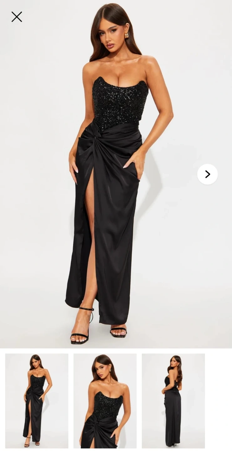 85This is a stunning black maxi dress with a sequin bodice and a stylish slit. Perfect for a night out or a special occasion! Location: Taunton and Townline Check out my other listings