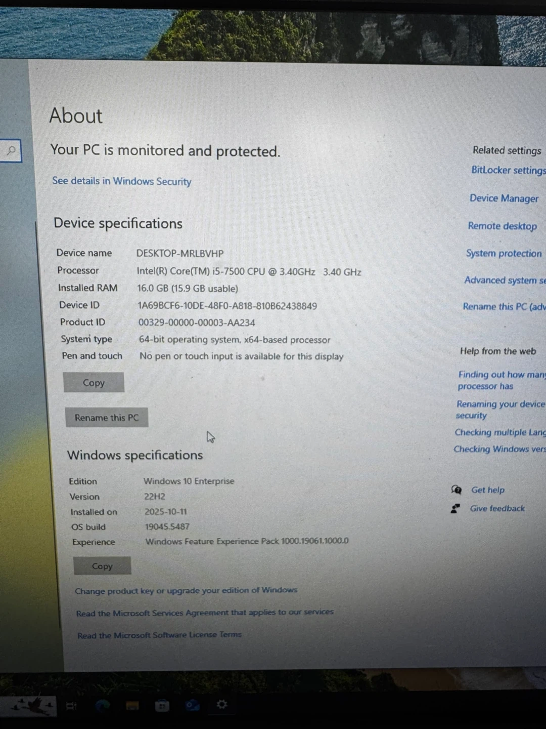 Selling a custom-built desktop PC. It features an Intel Core i5-7500 CPU running at 3.40 GHz, 16 GB of installed RAM, and runs Windows 10 Enterprise. It also has an LG Modisc optical drive. The PC has 119GB local disk (C:) with 36.5 GB used and 82.5 GB free. Also includes New Volume (E:) and (F:) with 237 GB free each comes with monitor and keyboard/mouse. And has pci express slots for your video card