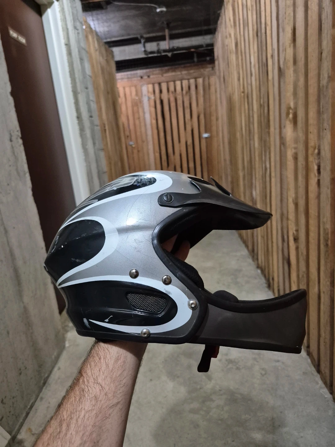 91Selling afull face snowboard racing helmet by Red (Burton). Can also be used for downhill mountain biking or any other extreme sport. Size small