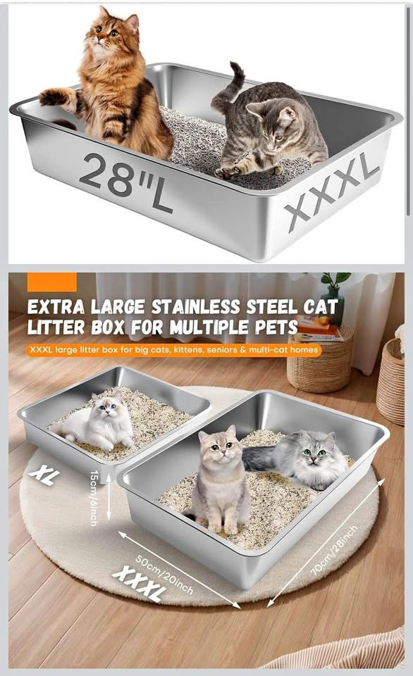 Extra Large Stainless Steel Litter Box, 28"x20"x6" XXXL Metal Cat Litter Box for Big Cats with High Sides, Cat Litter Pan for Multiple Animal, Anti-Urine Leakage, Easy Clean (70x50x15 cm)