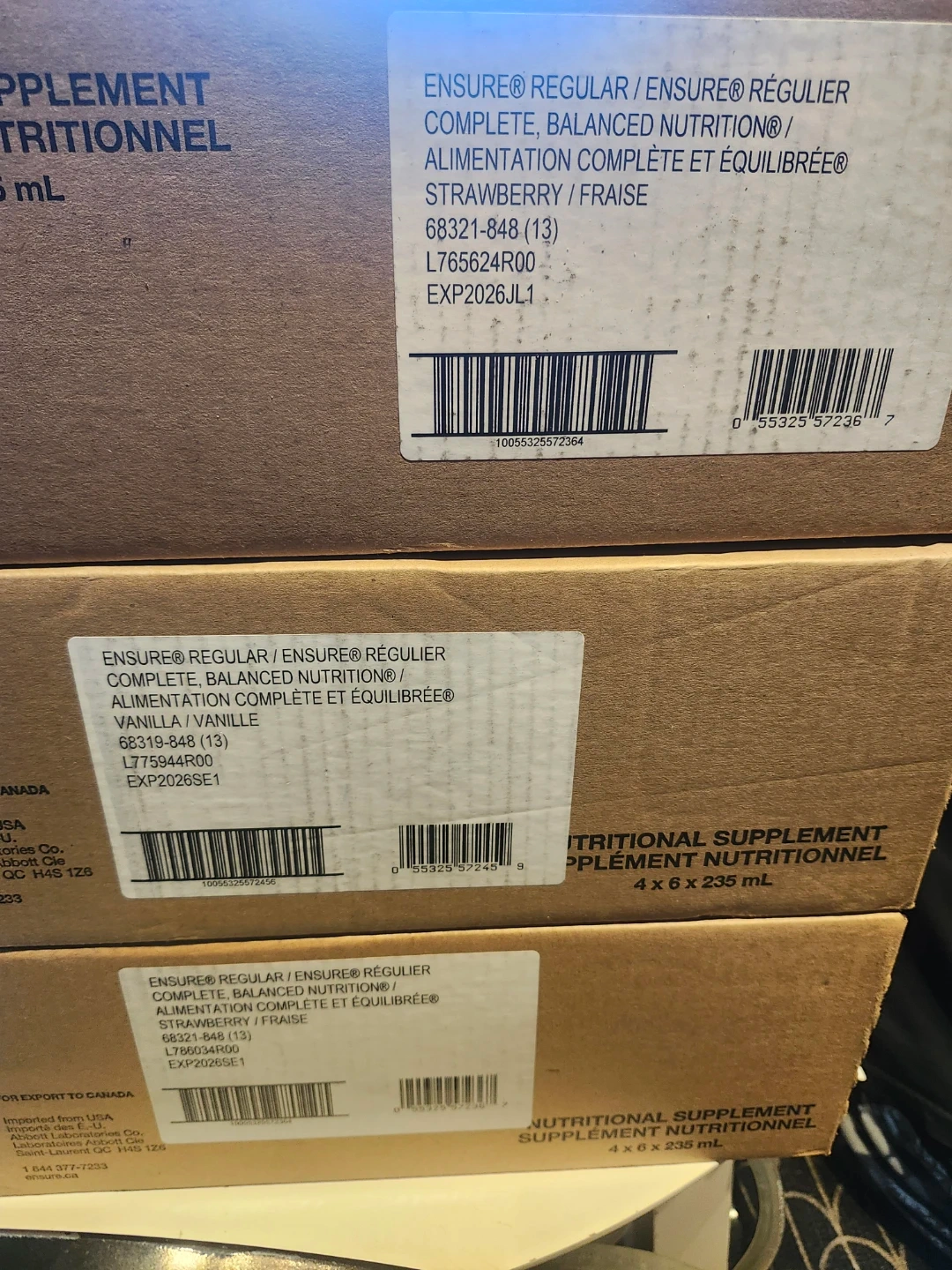 Selling Ensure Regular nutritional supplements, complete and balanced nutrition in strawberry and vanilla flavours. Expiry date is 2026 June 01price is per box