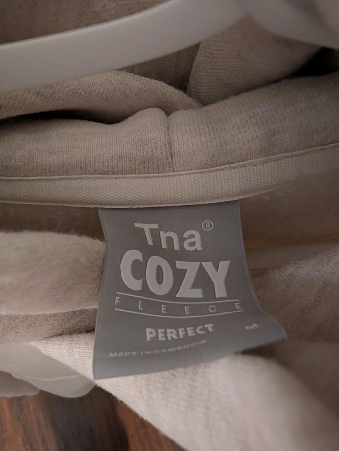 Selling a Tna Cozy Fleece Perfect Hoodie in size medium. It's in great condition and ready for a new home! This hoodie is super soft and comfortable, perfect for those cozy days.