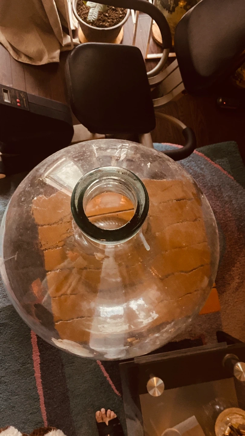 Selling a large glass demijohn bottle. It stands approximately 72 cm tall, making it a great statement piece for your home or garden. Perfect for wine making or as a decorative item!