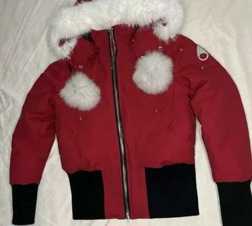 ✨️Design & Function: The waist-flattering bomber cut includes an adjustable hood with ✨️snap-detachable natural fox fur trim and playful pom-poms.