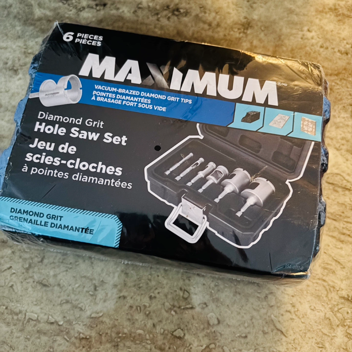 Selling a brand new Maximum Diamond Grit Hole Saw Set. It comes with 6 pieces and is still sealed in its original packaging. Great for granite, porcelain, and ceramic. Originally bought for $99.99+