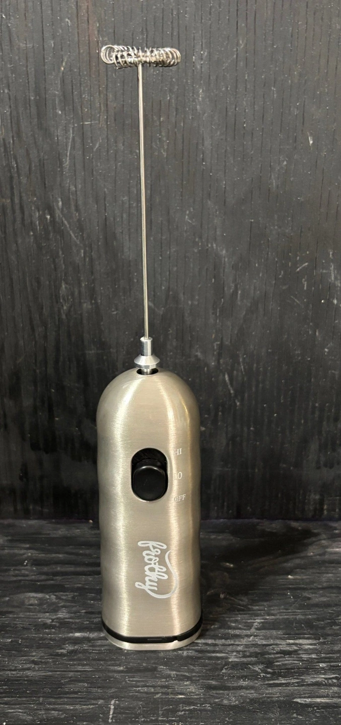 23Transform ordinary mornings into extraordinary café experiences with the Café Casa Milk Frother. This handheld electric whisk delivers barista quality microfoam in just seconds, turning any milk into clouds that crown your latte, cappuccino, matcha, or hot chocolate. This stainless steel wonder stands tall on its own base, ready to whip eggs fluffier, blend protein shakes smoother, and add the perfect froth to your well prepared beverage. Battery operated needing 2 AA batteries means a cordless operation that keeps tangled cords out of your kitchen and is ideal for portable use. Ditch your $7 daily coffee runs and grab the Café Casa Milk Frother now and taste the difference tomorrow morning. This is brand new, never used in its' original box.