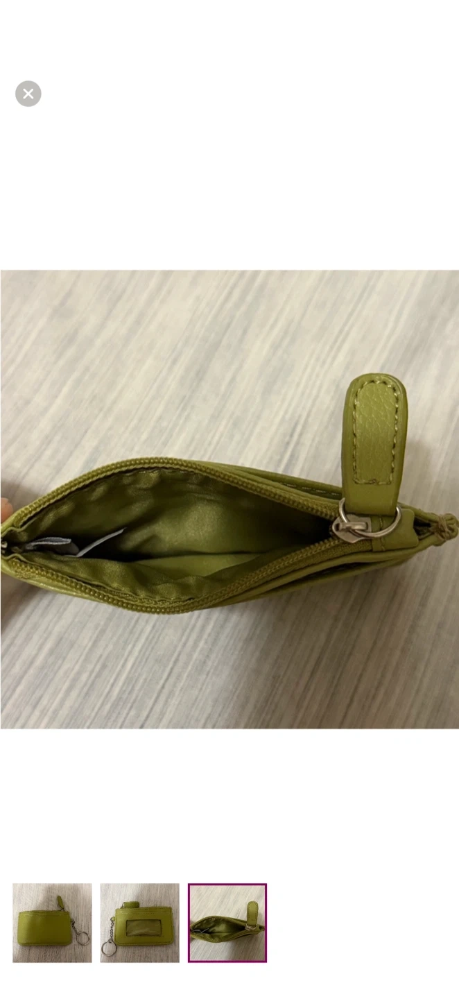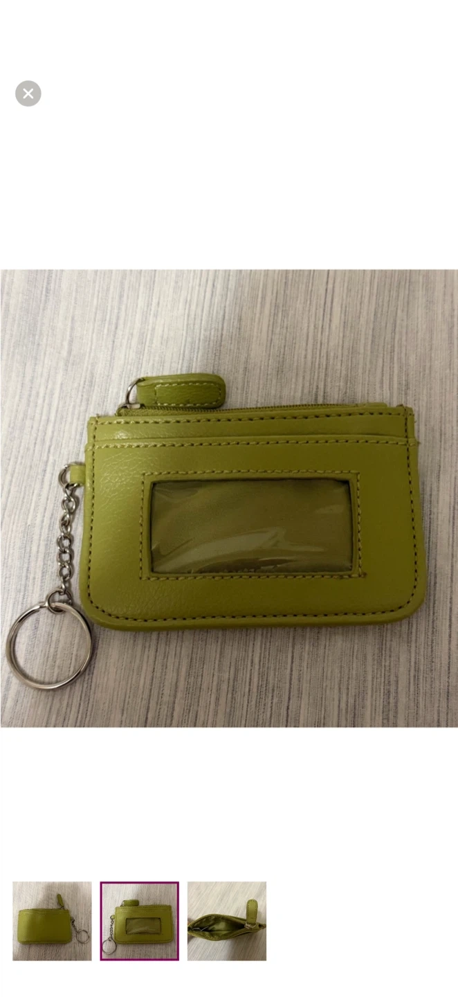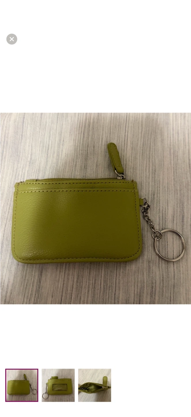 A cute little green coin purse with a keyring attached. It's perfect for keeping your coins and keys all in one place!