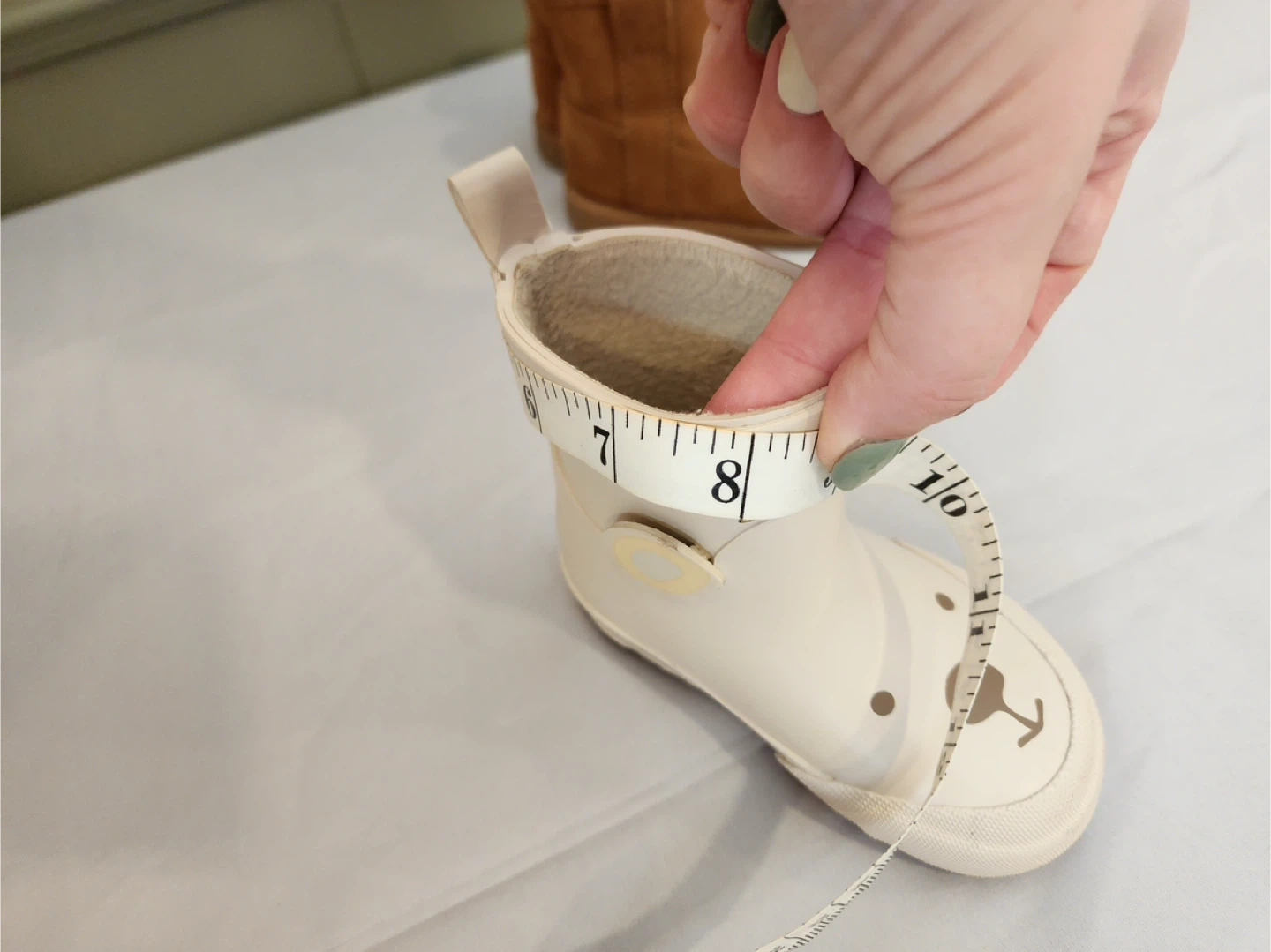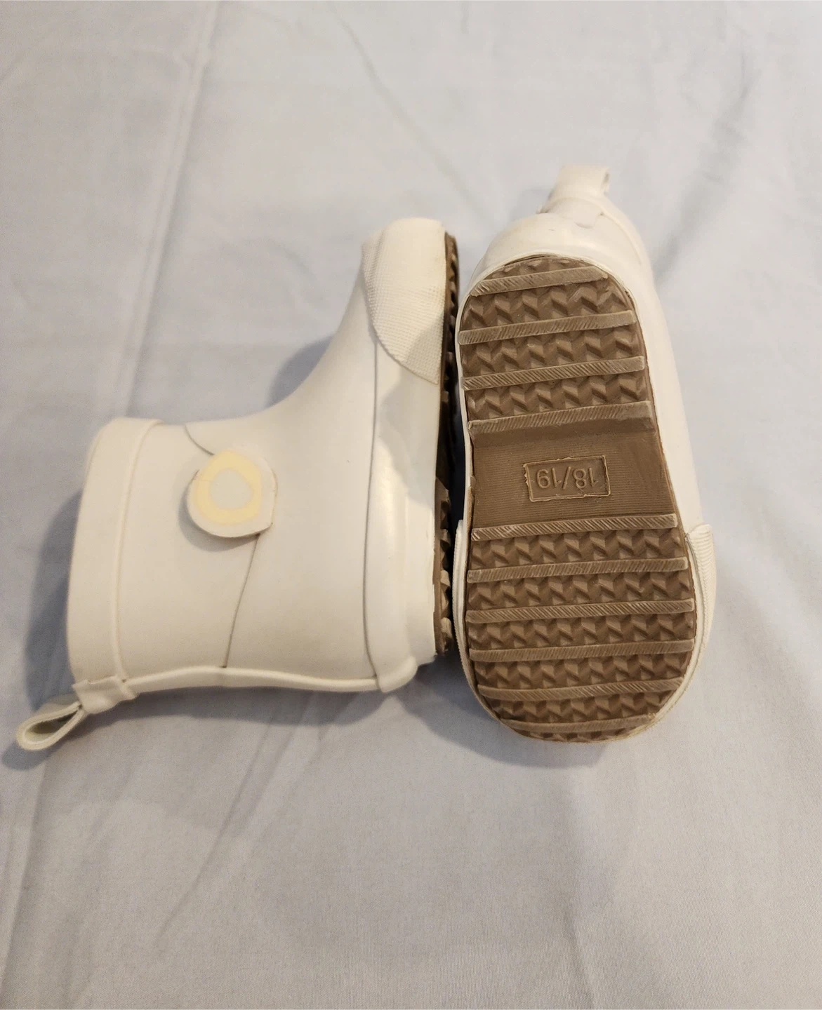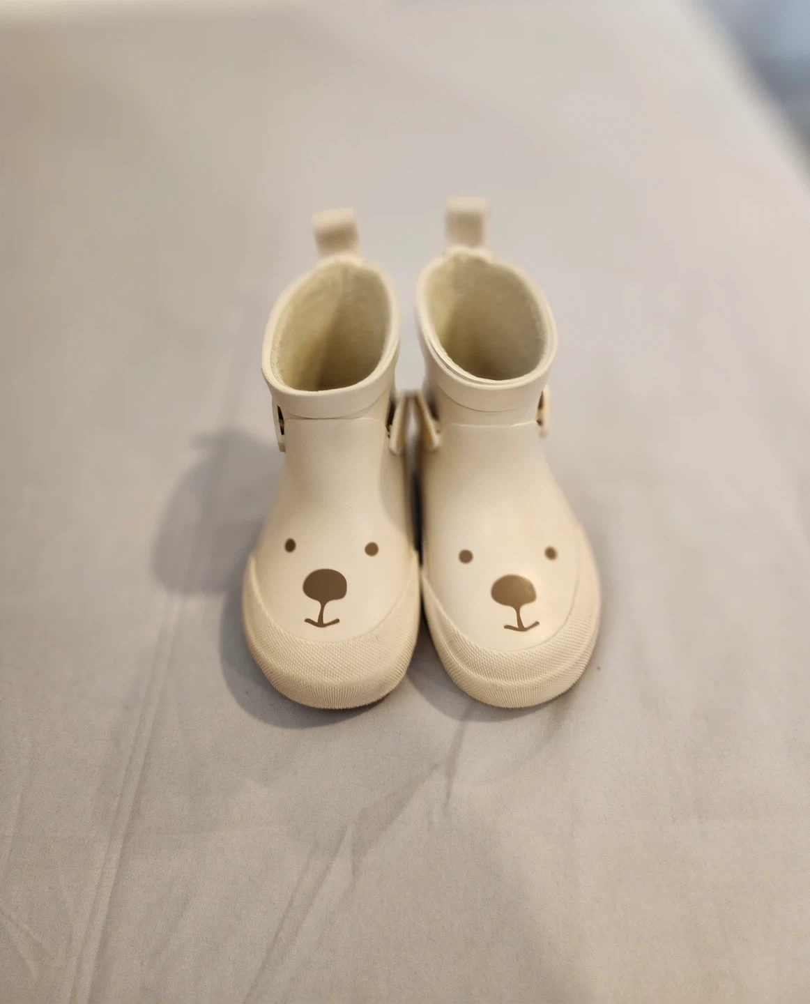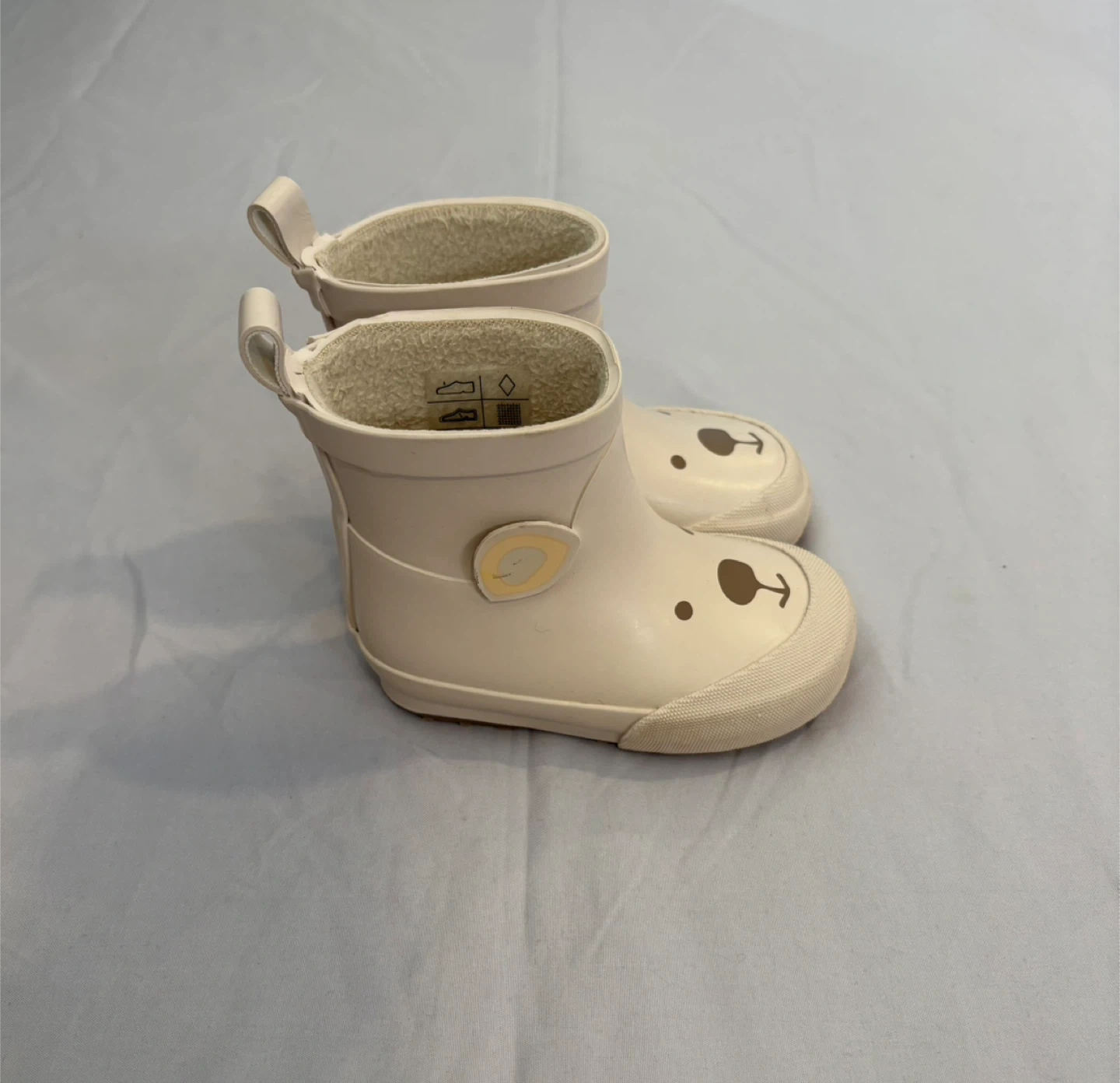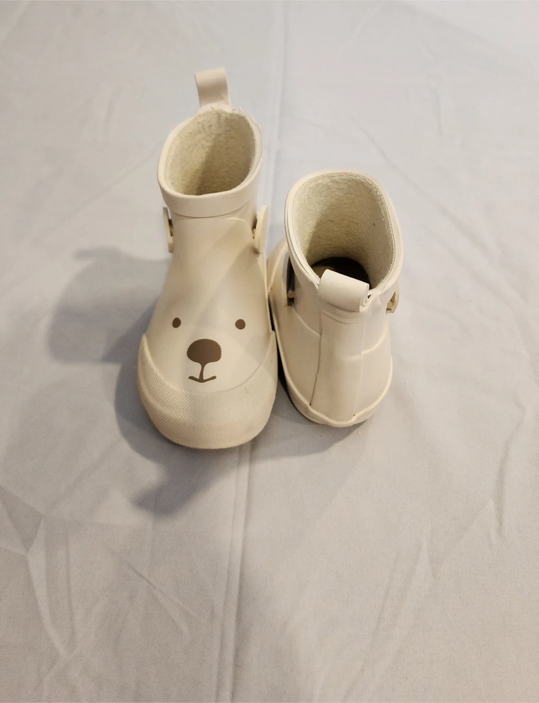 65These adorable rain boots feature a cute bear face design! They are in size 18/19. Perfect for keeping your little one's feet dry and stylish on rainy days. H&M brand. Also have little brown Fall boots Size US 4-5 Barley worn Small opening to the boot