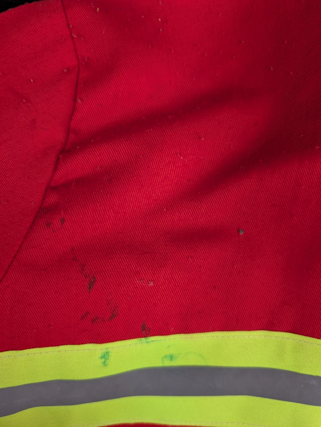 The Melissa & Dough firefighter coat is size 4-6 and is used condition and comes with 2 helmets (one black and one red).