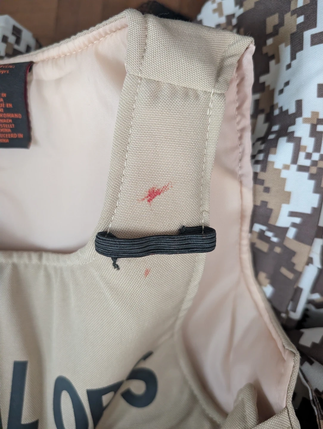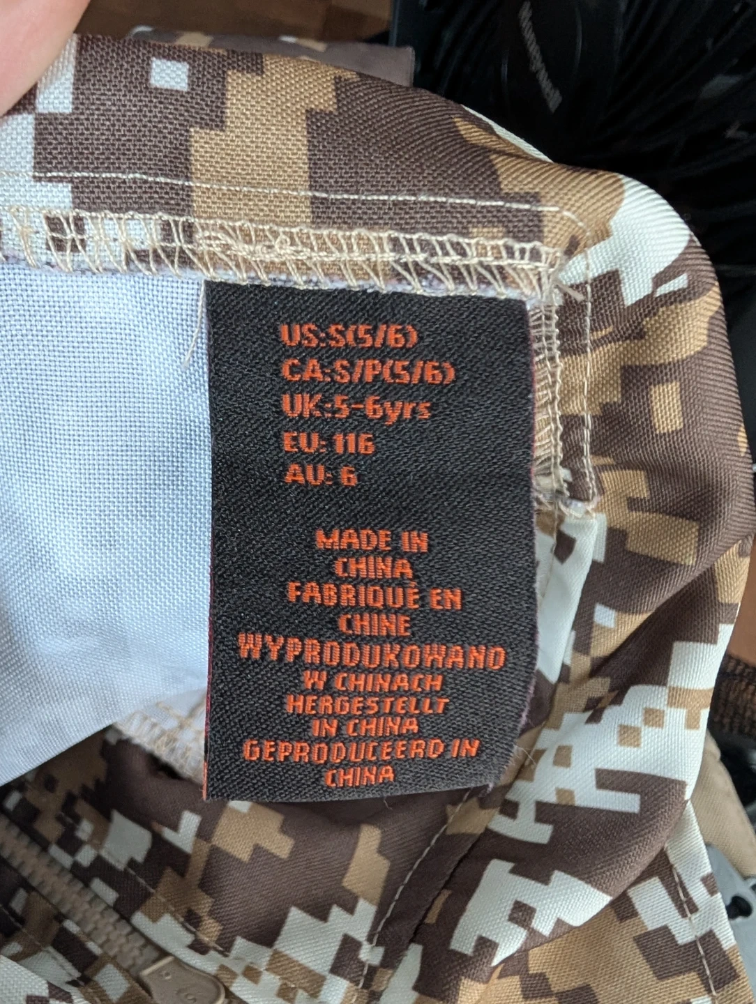 The Special OPS is size 5/6 and has the Vest, Jumpsuit, Walkie Talkie, and Handcuffs. It is in good used condition. With stains of res from fake blood.