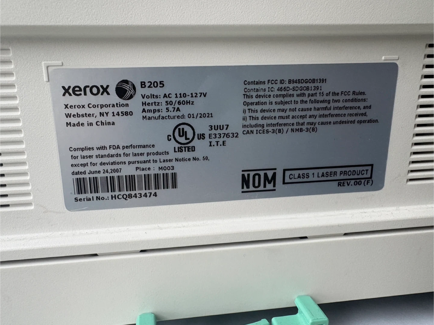 Selling a Xerox B205 Multifunction laser printer. It's in good working condition and ready for a new home. Perfect for home or small office use!