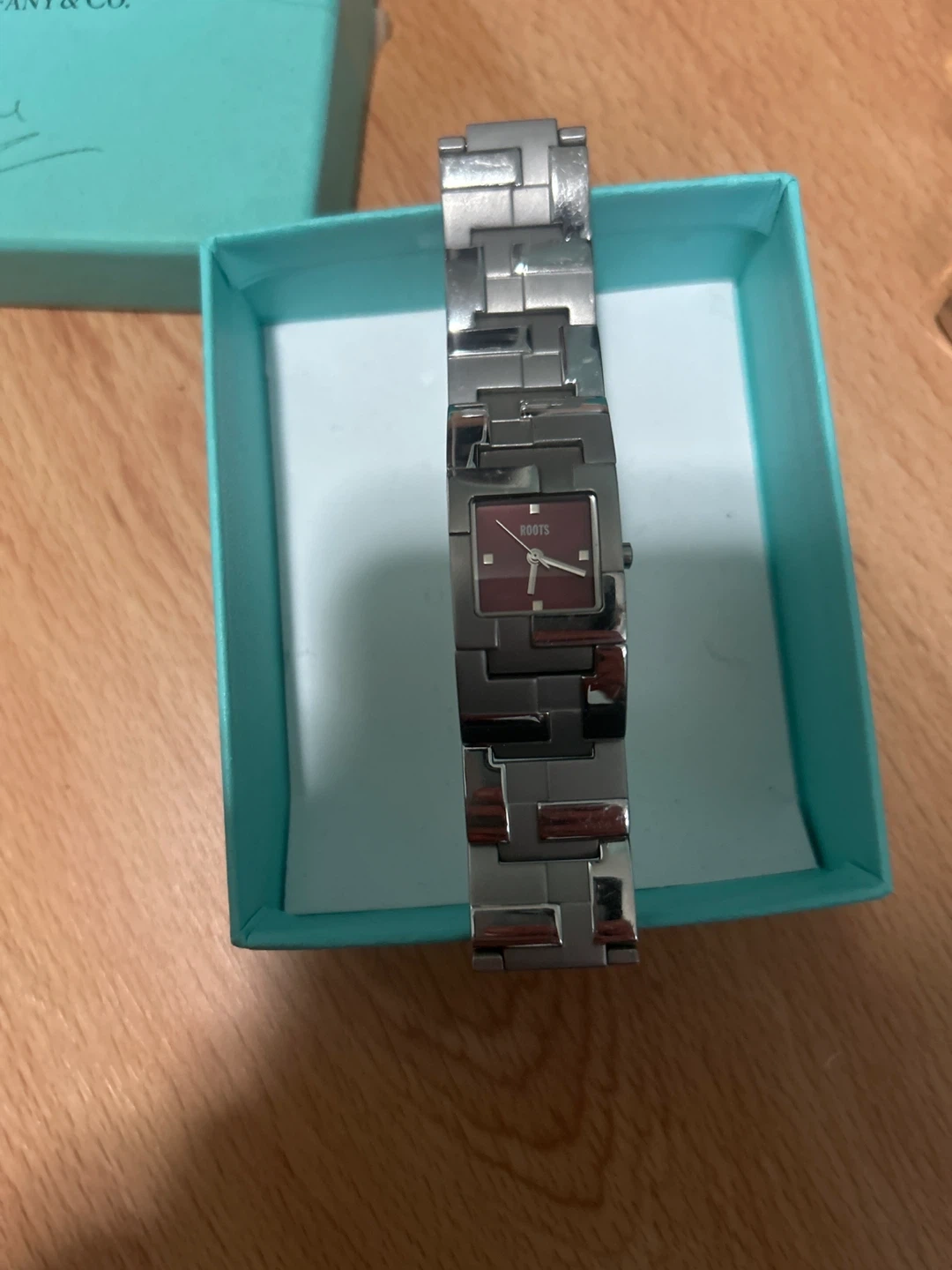 Selling a Roots women's watch. The watch has a silver-tone band and a red face. It's in great condition and ready for a new home. Needs new batteries otherwise in perfect condition.
