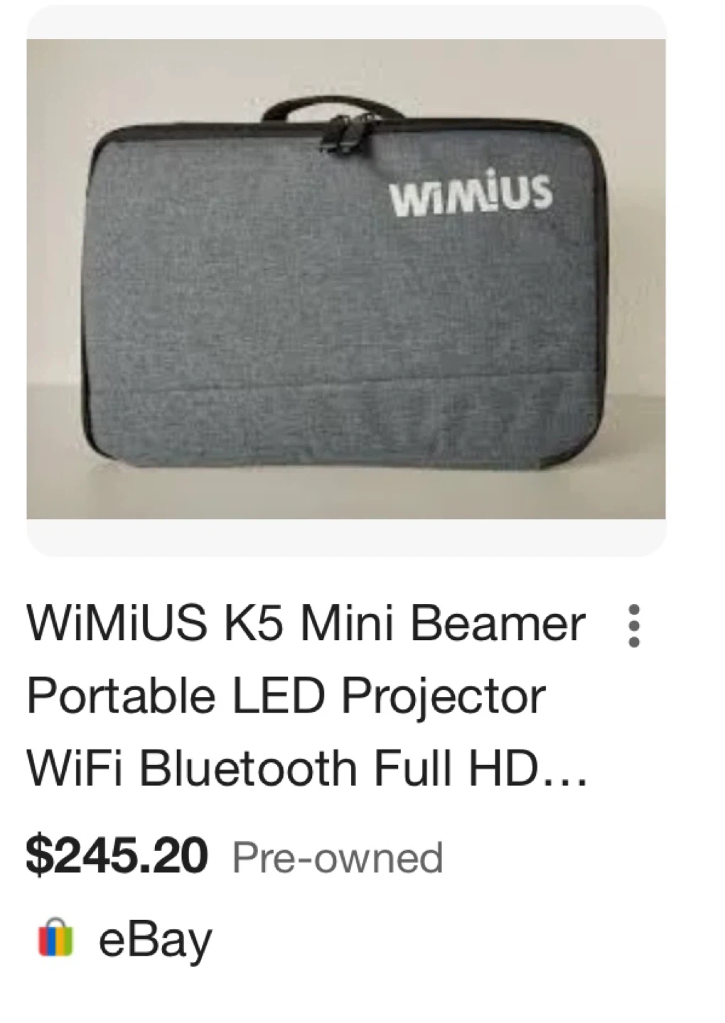 Selling a WiMiUS K5 Mini Beamer portable LED projector. It comes with its original box and user manual.