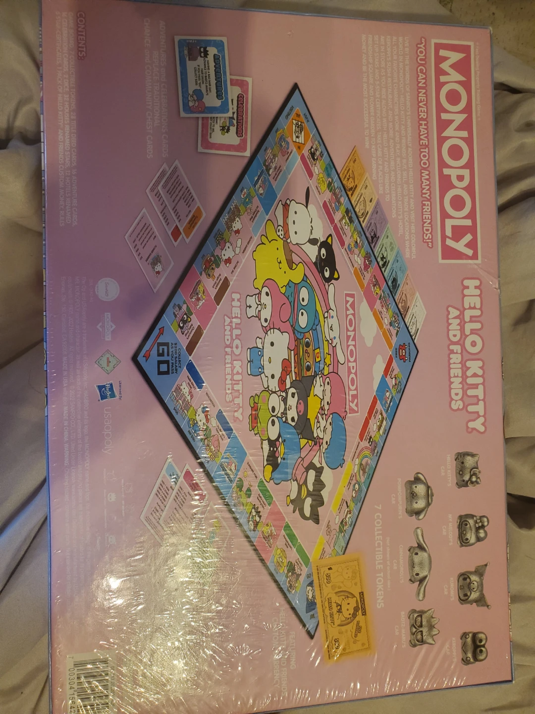 Selling a brand new, sealed Monopoly Hello Kitty and Friends edition! It's a fast-dealing property trading game. Includes 7 collectible tokens featuring Hello Kitty and her friends!