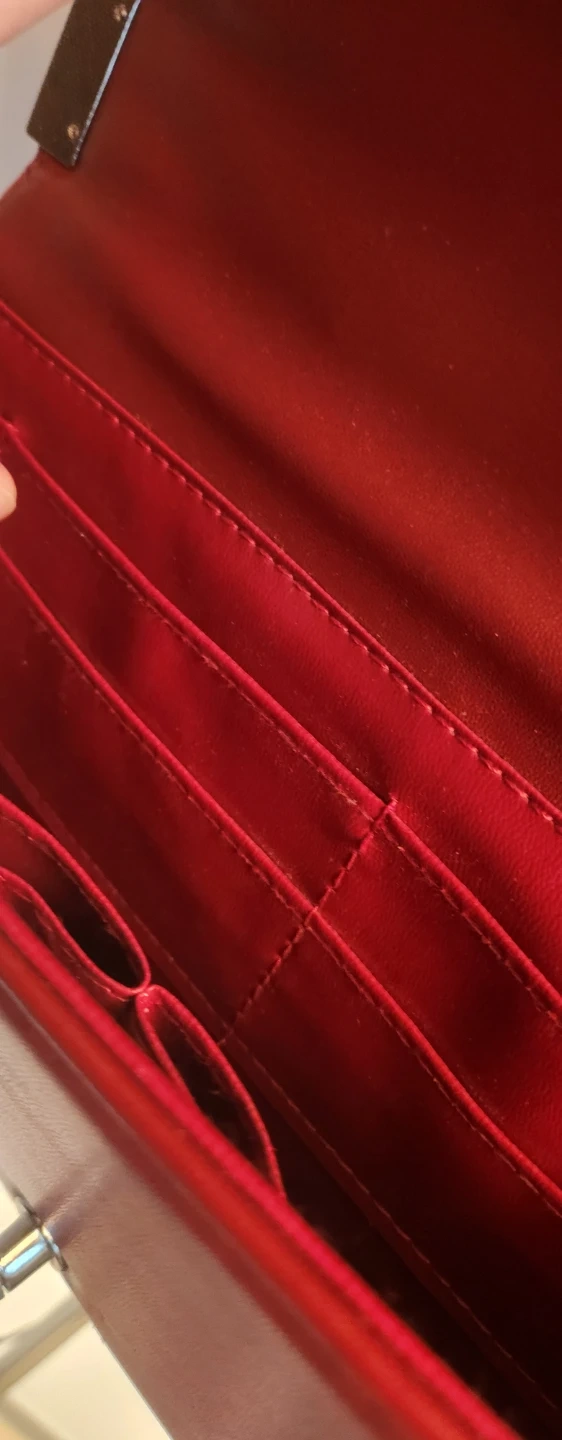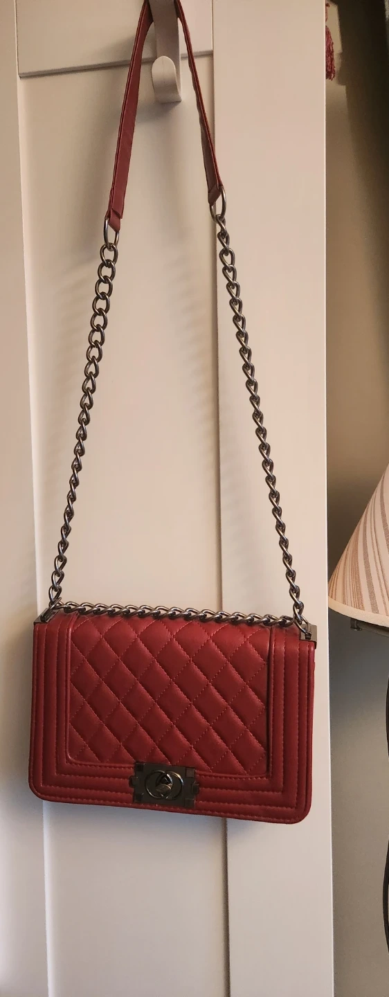 349Selling a stylish red quilted shoulder bag! It features a chain strap and a turn-lock closure. The interior has multiple compartments to keep your belongings organized. Perfect for adding a pop of colour to your outfit