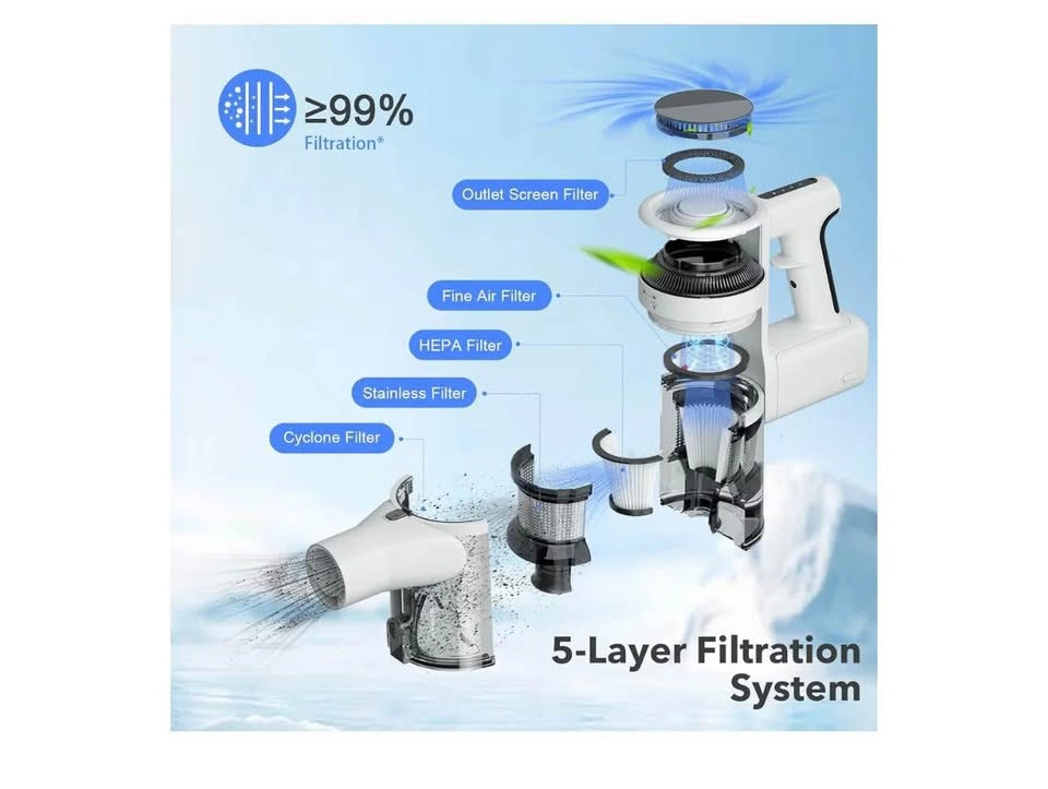 80,000PRM Motor Cordless Vacuum for Home, Vacuum Cleaner with 2 Adjustable Modes, 2200mAH Battery Max 35 Mins Runtime, and Washable Parts Stick Vacuum (Tender White)