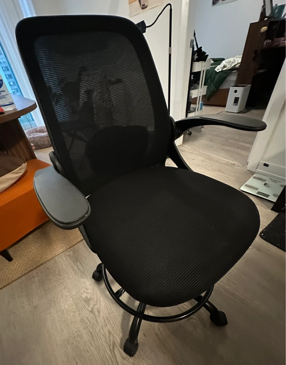 It has a footrest, so your feet can rest easily, and it’s ergonomically designed, so even if you sit for a long time, your body won’t feel tired.