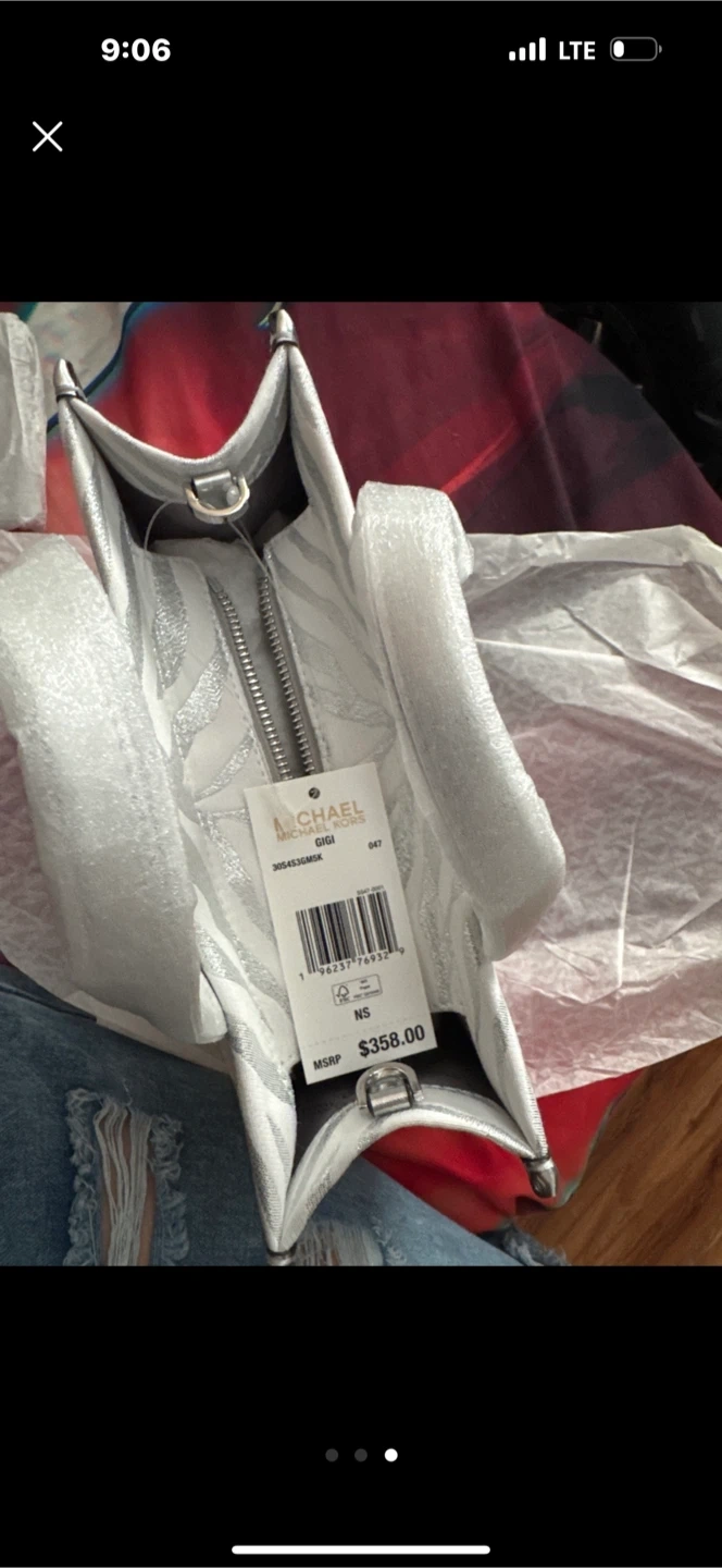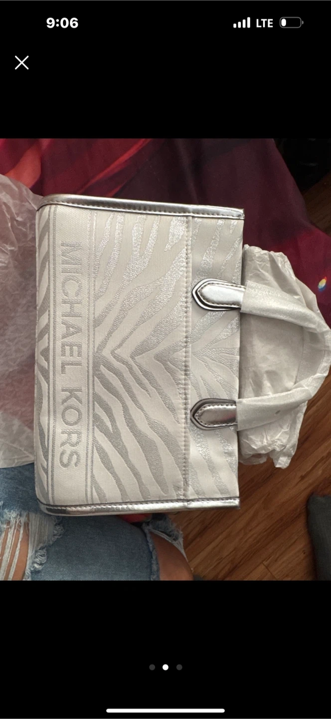 Selling a brand new Michael Kors Gigi tote bag! It has a beautiful zebra print design in silver and white. It still has the original tag attached. Originally bought for $358