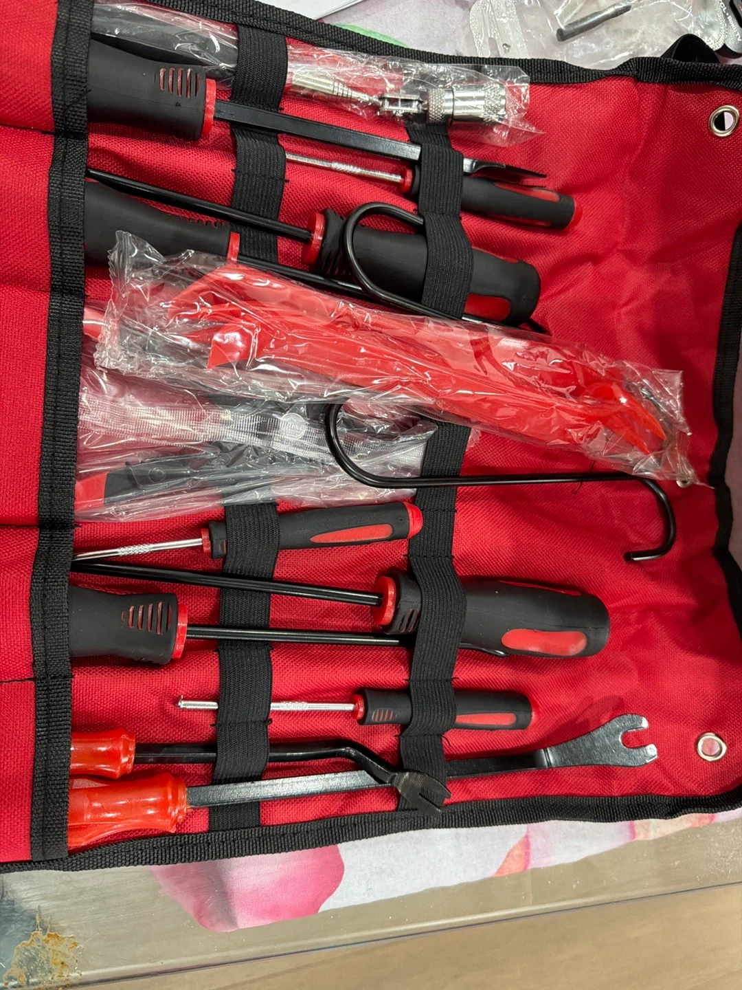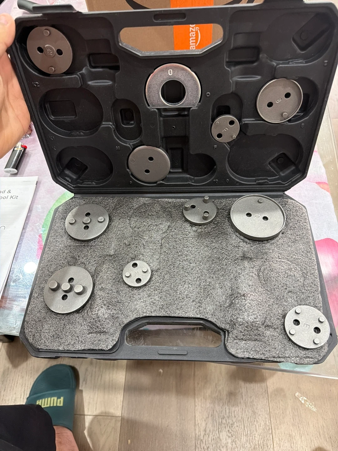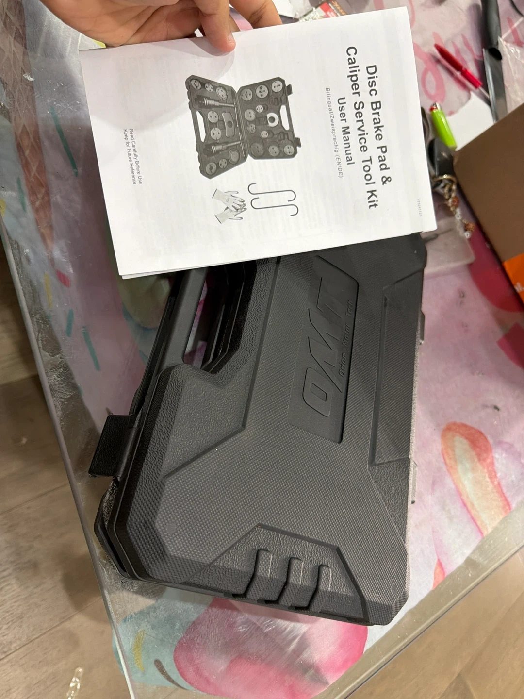 Selling a disc brake pad and caliper service tool kit. It includes a user manual and comes in a case for easy storage and organization