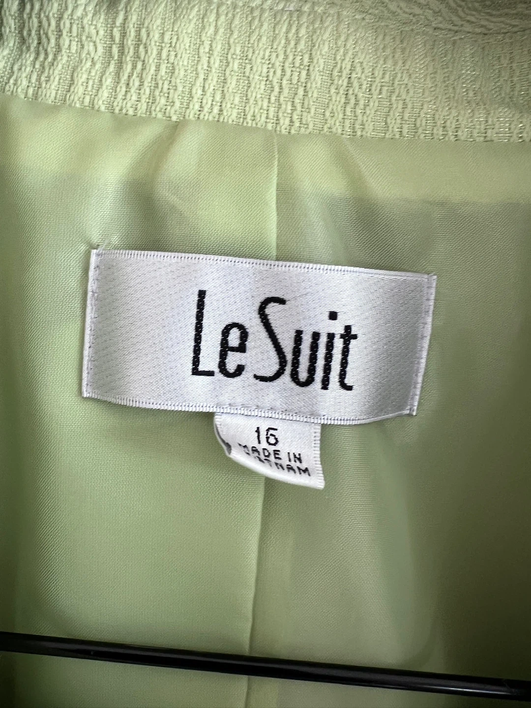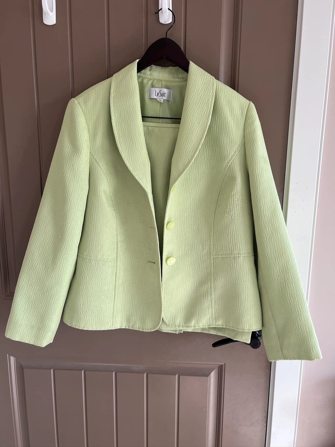 Selling a lovely Le Suit skirt suit in size 16. The colour is a nice light green. It's in great condition!