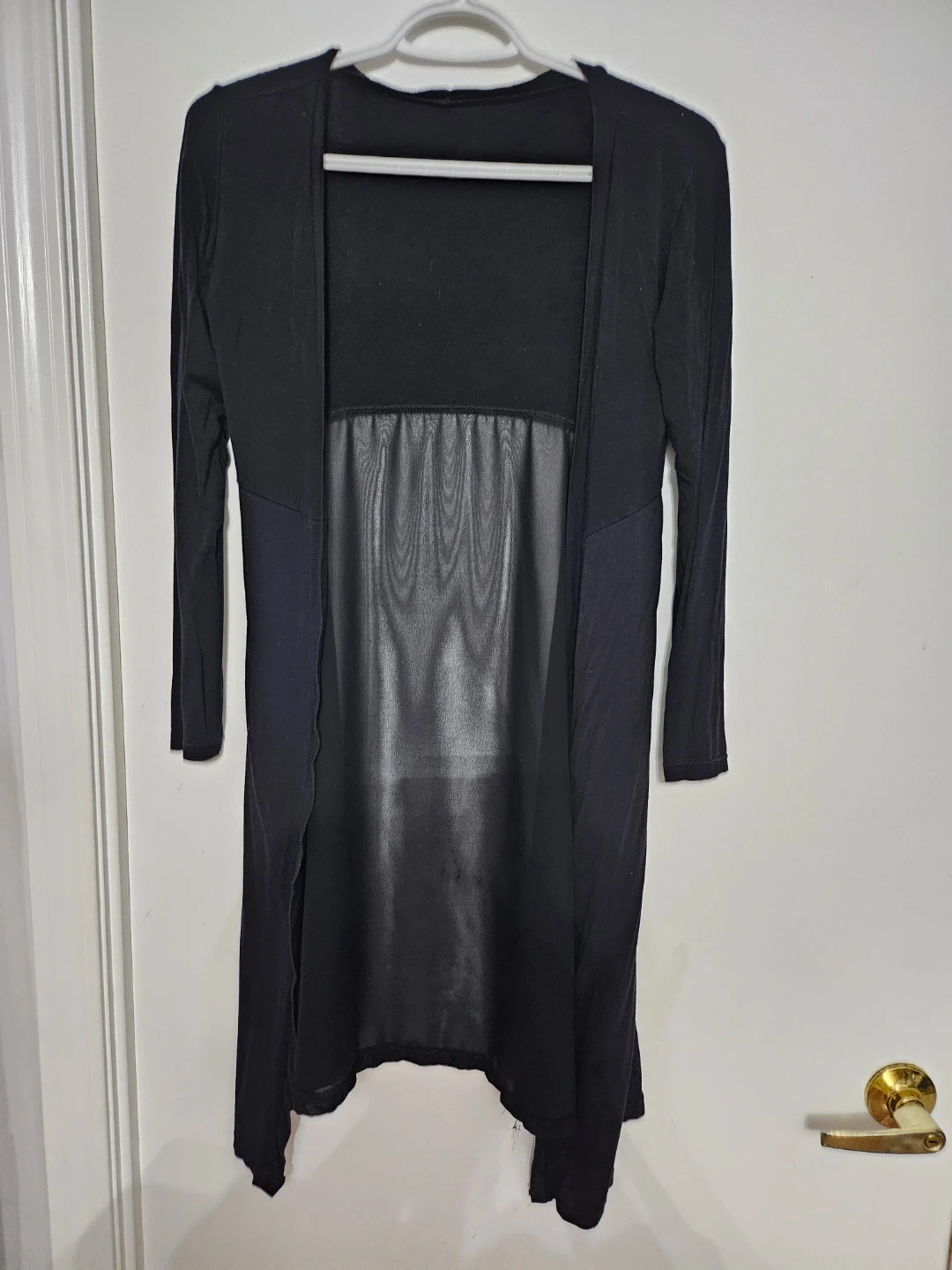1000+$5 for 2 a long black cardigan featuring a sheer panel in the back. And green top lace necklace