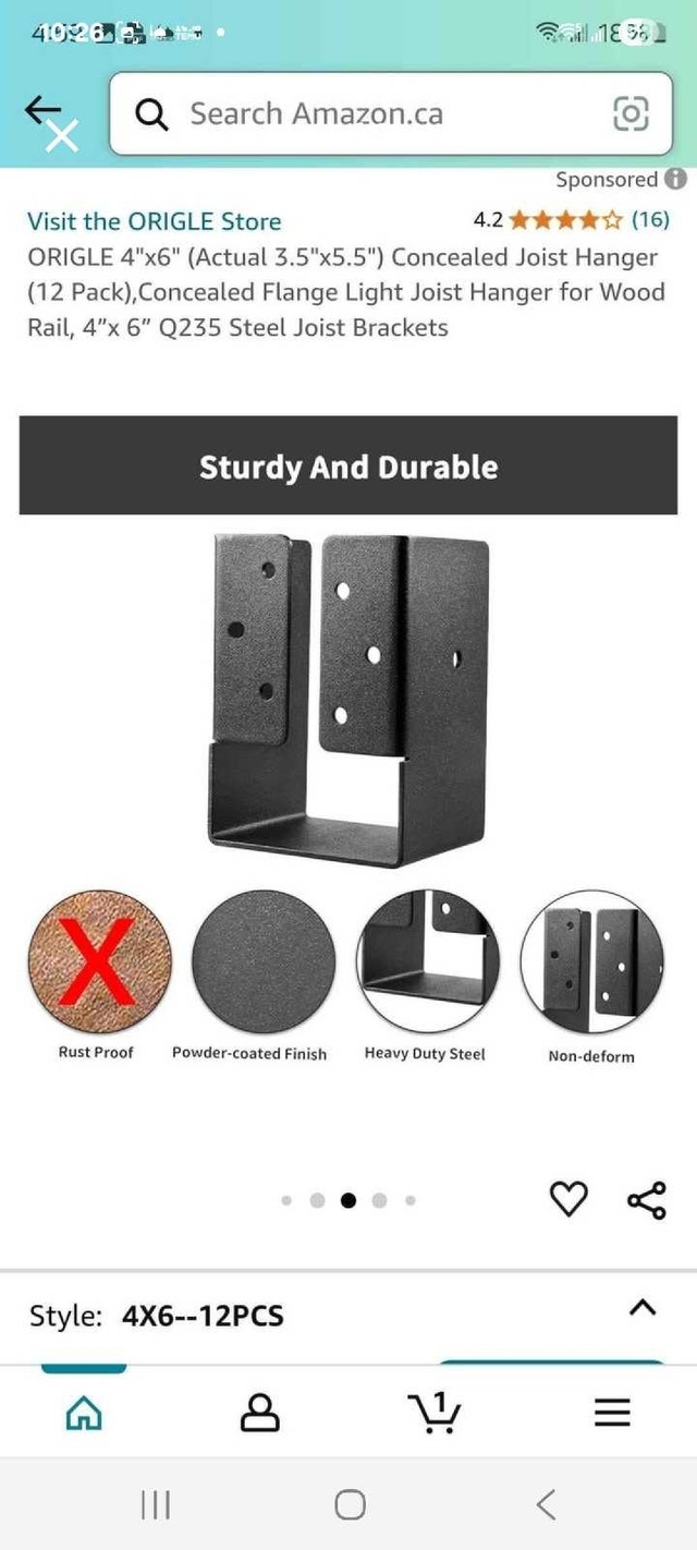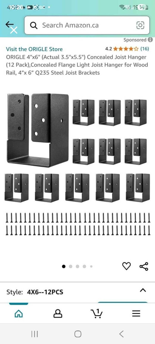 Selling a set of twelve Origle 4x6 concealed joist hangers, perfect for wood rail construction projects. Each bracket measures 3.5"x5.5" and is made of sturdy and durable Q235 steel. They are new in their original packaging. These will help you create a professional finish. Fits standard 4"x6" lumber. Each hanger weighs 1.5 lbs / 0.7 kg. Still available!
