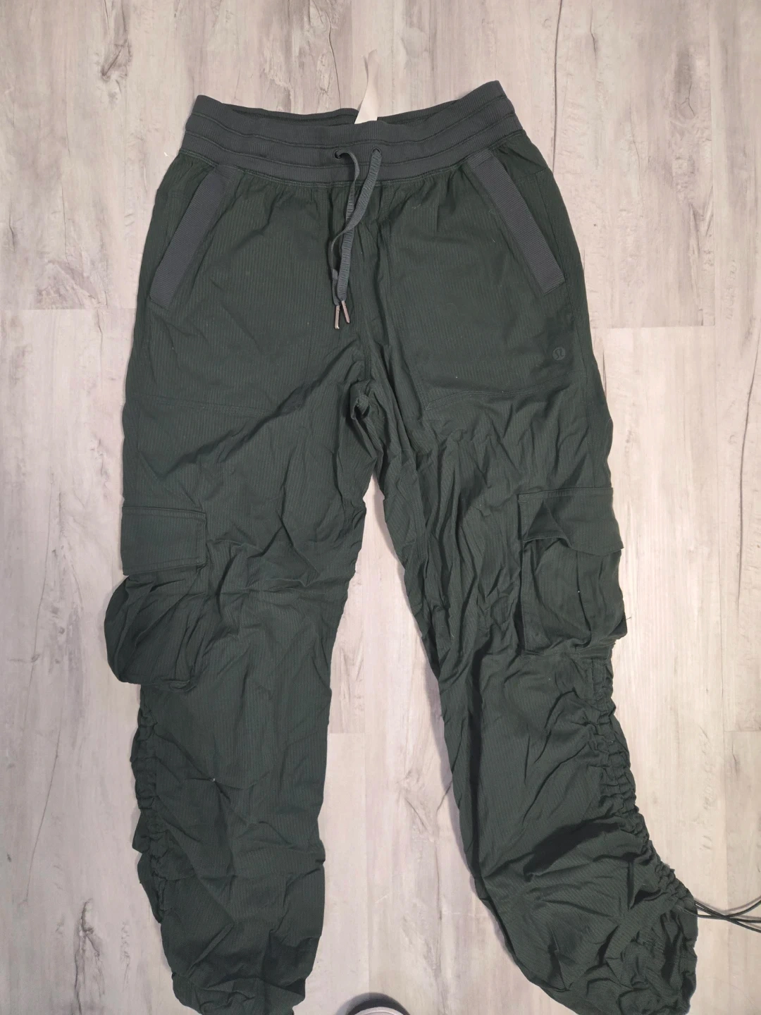 Selling a pair of Lululemon cargo pants in olive green! They're a size XS and in great condition. Perfect for workouts or just lounging around!