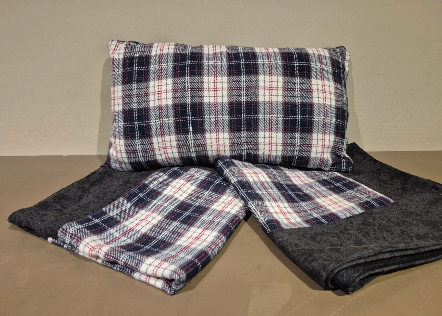 Cozy up your space with this comfy plaid throw cushion set! (3) A classic gray plaid pattern with a soft, warm feel. The small retro theme cushion compliments the two 18x18 square perfectly, adding a touch of style and comfort to any room. Perfect for snuggling up on the couch or add a decorative winter touch to your space. Zippered. Fillers for cushions avaliable for extra cost.